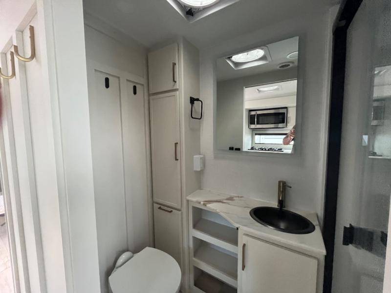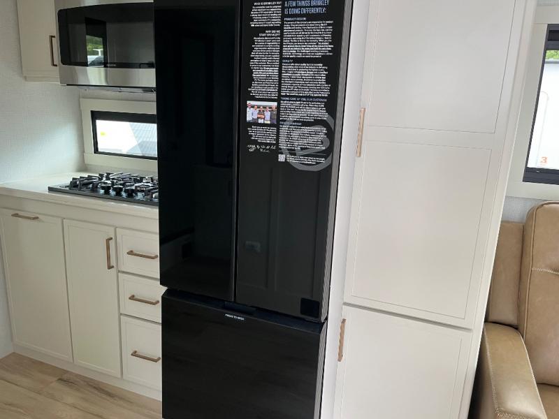 The lightweight Model I travel trailer by Brinkley is the perfect choice for those looking for an easy tow and at-home comforts! There is a drop-frame chassis, high-performance Road Armor suspension equalizer system, and Demco EZ Latch trailer coupler that automatically latches when dropped onto a hitch ball without the need of a safety pin. Additional exterior features include square Euro frameless windows, automotive-grade paint, full-width LED strip lighting in the pass-thru, and a pet & property security campside tie-down to keep your gear and furry friends safe. Inside, you'll be wowed by Brinkley's CraftSense wood trim construction, residential solid surface kitchen countertops, dimmable bedroom lights, and marine-grade neon LED shower lighting to name a few stand-out features!