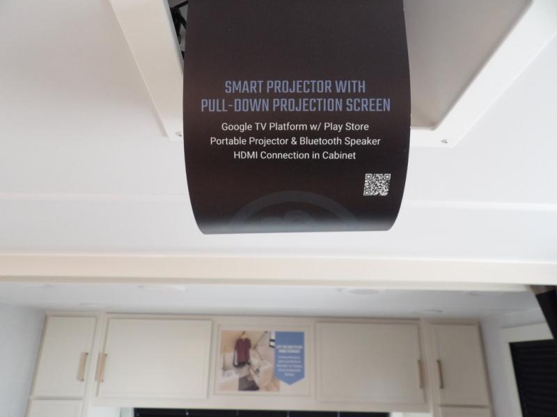 You'll love the amount of space you have in this travel trailer thanks to the large slide out in the main living area. There is comfy theater seating here, along with the kitchen appliances plus a pantry with drawers and an outlet. And a tri-fold sofa option can be chosen in place of theater seating if you're needing sleeping space for guests. You can dine at the pull-out dining table with a drawer, which is right in front of the pull-down interior/exterior screen. A full bath with a 36" x 30" shower will let you freshen up each day, and the king bed in the front bedroom includes a room divider in front for added privacy!