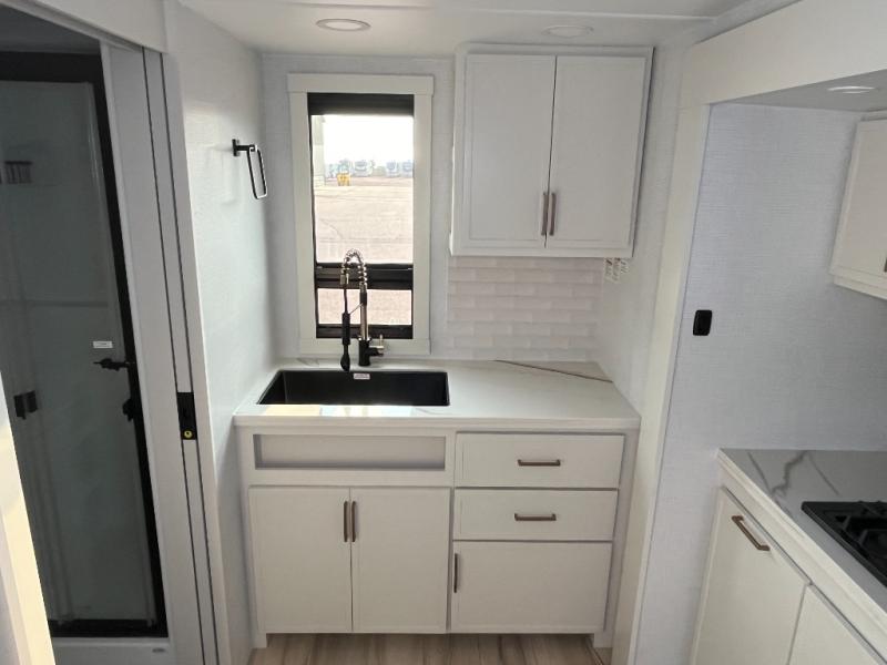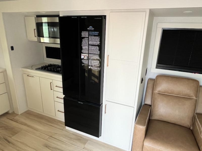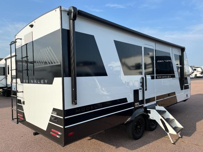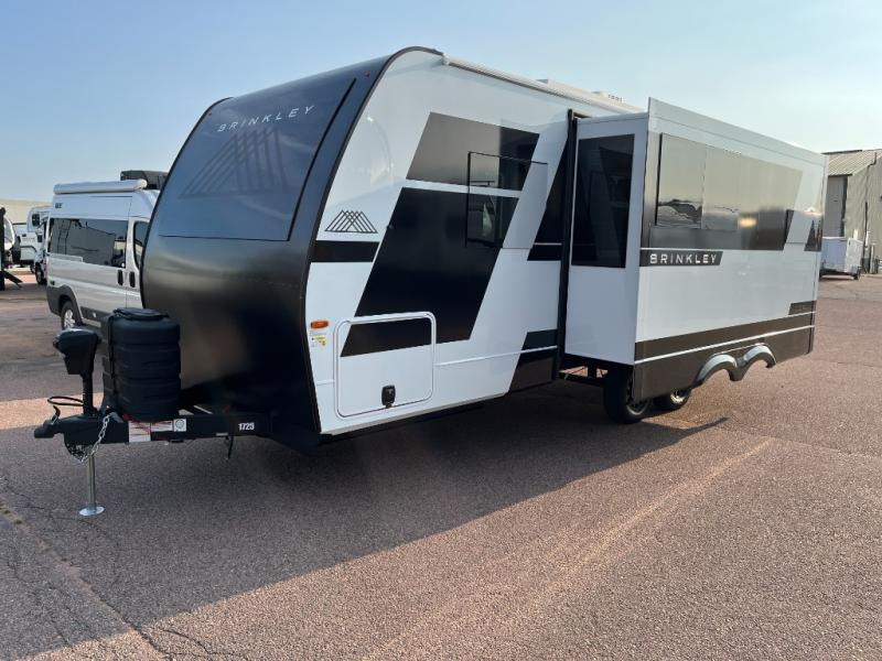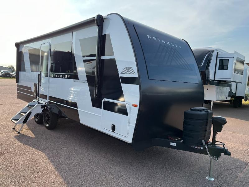 The lightweight Model I travel trailer by Brinkley is the perfect choice for those looking for an easy tow and at-home comforts! There is a drop-frame chassis, high-performance Road Armor suspension equalizer system, and Demco EZ Latch trailer coupler that automatically latches when dropped onto a hitch ball without the need of a safety pin. Additional exterior features include square Euro frameless windows, automotive-grade paint, full-width LED strip lighting in the pass-thru, and a pet & property security campside tie-down to keep your gear and furry friends safe. Inside, you'll be wowed by Brinkley's CraftSense wood trim construction, residential solid surface kitchen countertops, dimmable bedroom lights, and marine-grade neon LED shower lighting to name a few stand-out features!