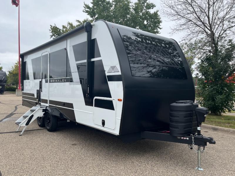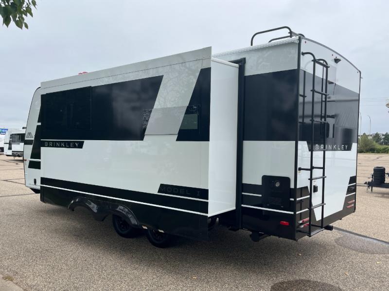 The lightweight Model I travel trailer by Brinkley is the perfect choice for those looking for an easy tow and at-home comforts! There is a drop-frame chassis, high-performance Road Armor suspension equalizer system, and Demco EZ Latch trailer coupler that automatically latches when dropped onto a hitch ball without the need of a safety pin. Additional exterior features include square Euro frameless windows, automotive-grade paint, full-width LED strip lighting in the pass-thru, and a pet & property security campside tie-down to keep your gear and furry friends safe. Inside, you'll be wowed by Brinkley's CraftSense wood trim construction, residential solid surface kitchen countertops, dimmable bedroom lights, and marine-grade neon LED shower lighting to name a few stand-out features!