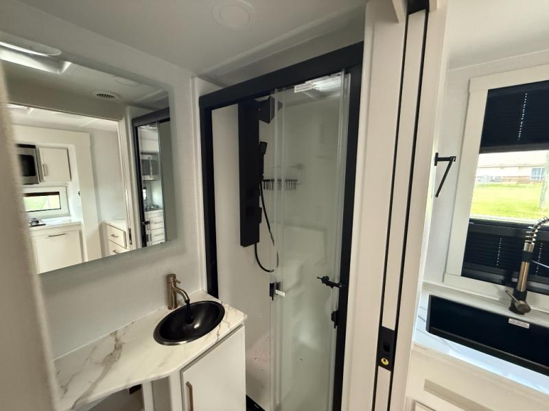 The lightweight Model I travel trailer by Brinkley is the perfect choice for those looking for an easy tow and at-home comforts! There is a drop-frame chassis, high-performance Road Armor suspension equalizer system, and Demco EZ Latch trailer coupler that automatically latches when dropped onto a hitch ball without the need of a safety pin. Additional exterior features include square Euro frameless windows, automotive-grade paint, full-width LED strip lighting in the pass-thru, and a pet & property security campside tie-down to keep your gear and furry friends safe. Inside, you'll be wowed by Brinkley's CraftSense wood trim construction, residential solid surface kitchen countertops, dimmable bedroom lights, and marine-grade neon LED shower lighting to name a few stand-out features!
