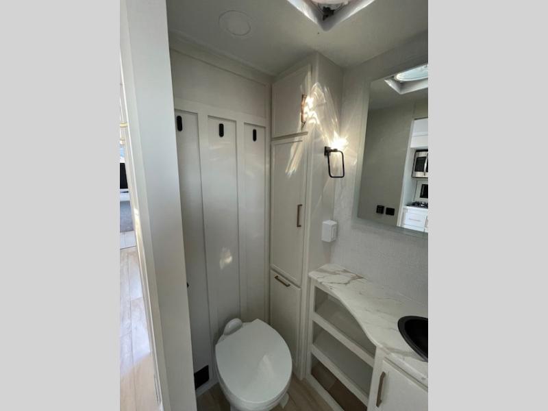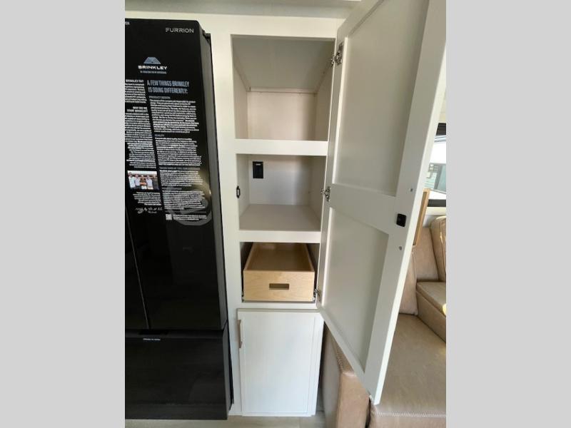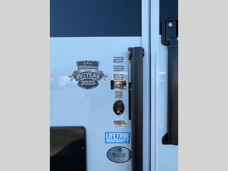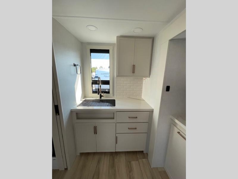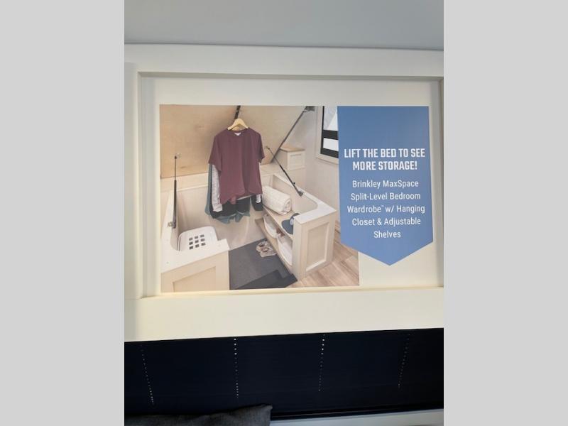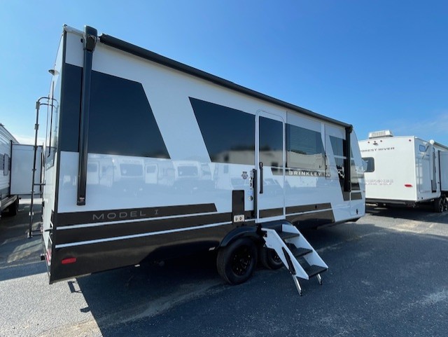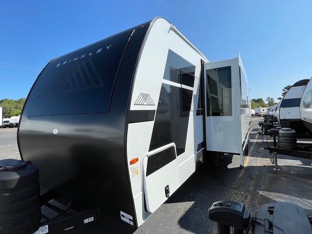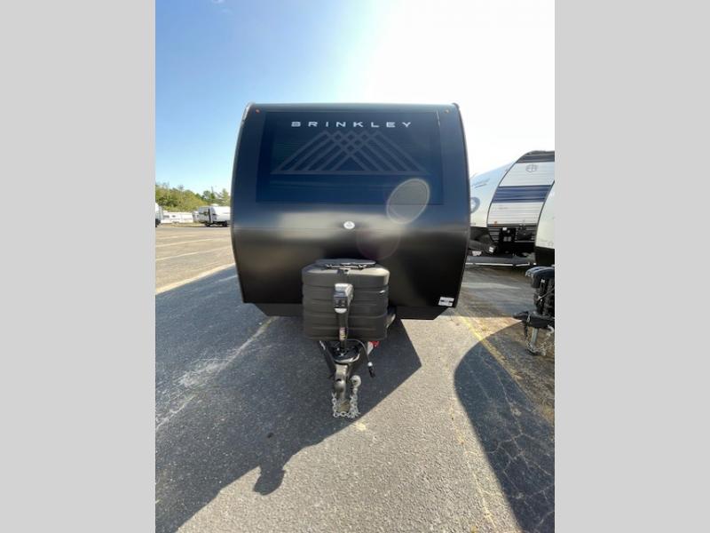 The lightweight Model I travel trailer by Brinkley is the perfect choice for those looking for an easy tow and at-home comforts! There is a drop-frame chassis, high-performance Road Armor suspension equalizer system, and Demco EZ Latch trailer coupler that automatically latches when dropped onto a hitch ball without the need of a safety pin. Additional exterior features include square Euro frameless windows, automotive-grade paint, full-width LED strip lighting in the pass-thru, and a pet & property security campside tie-down to keep your gear and furry friends safe. Inside, you'll be wowed by Brinkley's CraftSense wood trim construction, residential solid surface kitchen countertops, dimmable bedroom lights, and marine-grade neon LED shower lighting to name a few stand-out features!
