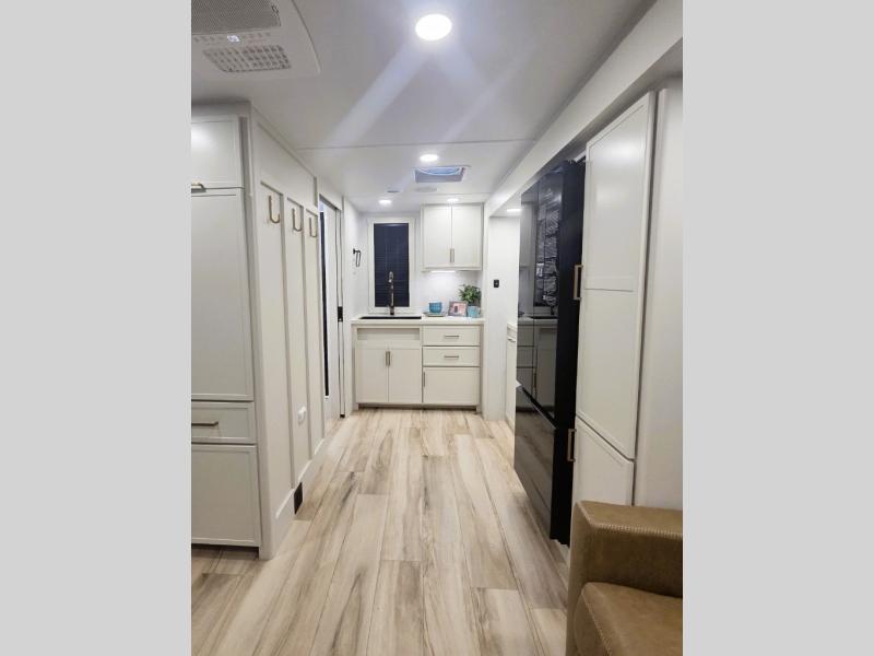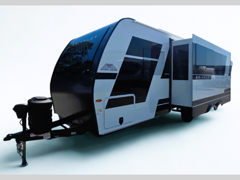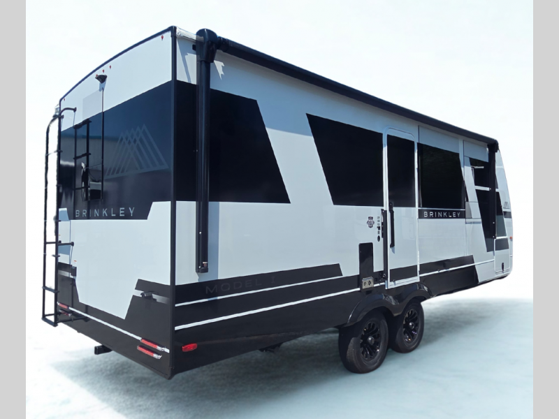 The lightweight Model I travel trailer by Brinkley is the perfect choice for those looking for an easy tow and at-home comforts! There is a drop-frame chassis, high-performance Road Armor suspension equalizer system, and Demco EZ Latch trailer coupler that automatically latches when dropped onto a hitch ball without the need of a safety pin. Additional exterior features include square Euro frameless windows, automotive-grade paint, full-width LED strip lighting in the pass-thru, and a pet & property security campside tie-down to keep your gear and furry friends safe. Inside, you'll be wowed by Brinkley's CraftSense wood trim construction, residential solid surface kitchen countertops, dimmable bedroom lights, and marine-grade neon LED shower lighting to name a few stand-out features!