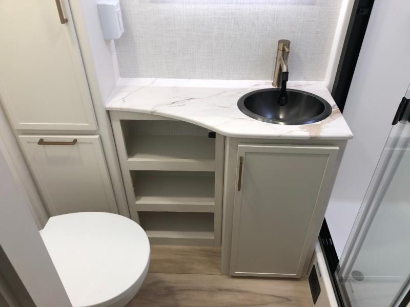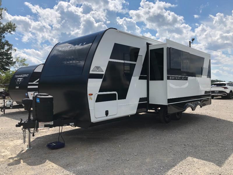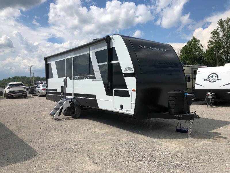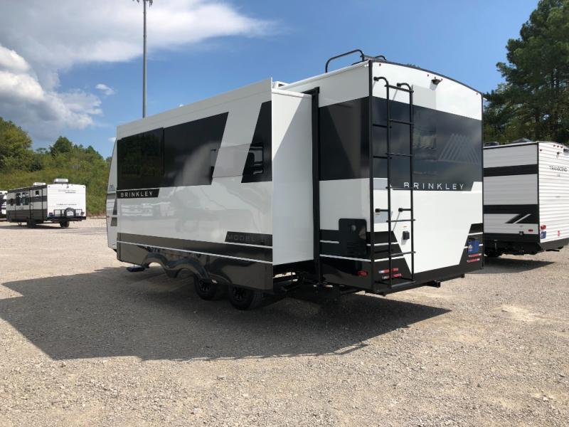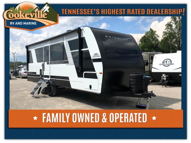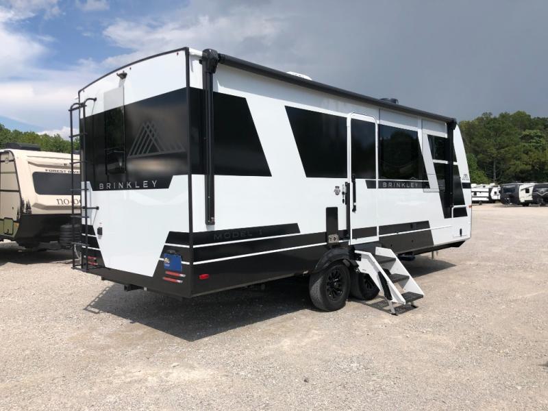 The lightweight Model I travel trailer by Brinkley is the perfect choice for those looking for an easy tow and at-home comforts! There is a drop-frame chassis, high-performance Road Armor suspension equalizer system, and Demco EZ Latch trailer coupler that automatically latches when dropped onto a hitch ball without the need of a safety pin. Additional exterior features include square Euro frameless windows, automotive-grade paint, full-width LED strip lighting in the pass-thru, and a pet & property security campside tie-down to keep your gear and furry friends safe. Inside, you'll be wowed by Brinkley's CraftSense wood trim construction, residential solid surface kitchen countertops, dimmable bedroom lights, and marine-grade neon LED shower lighting to name a few stand-out features!
