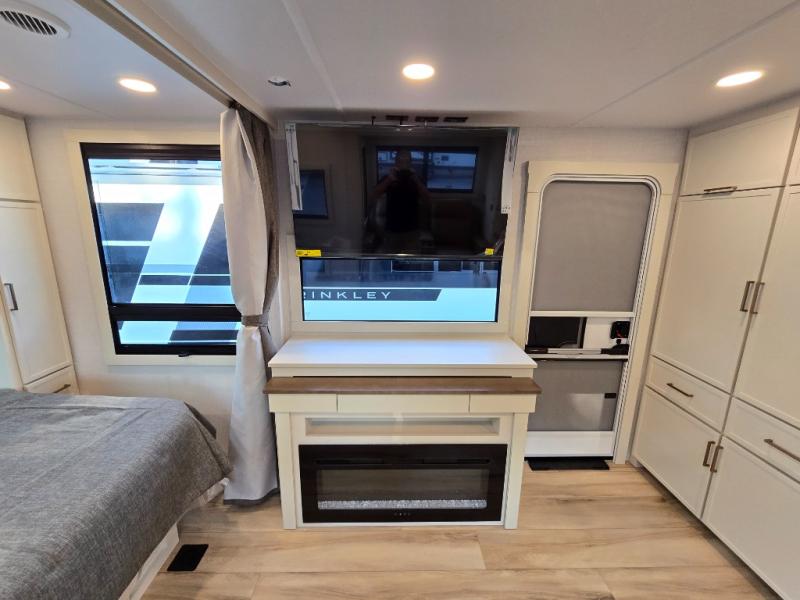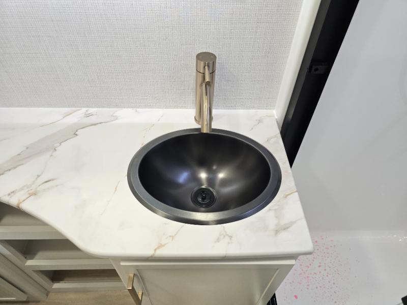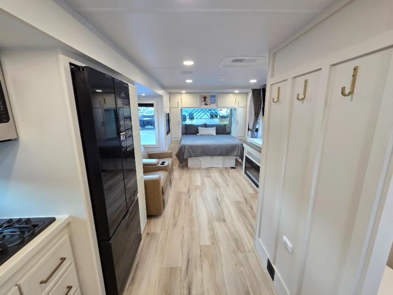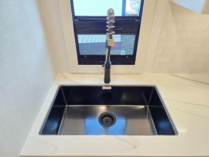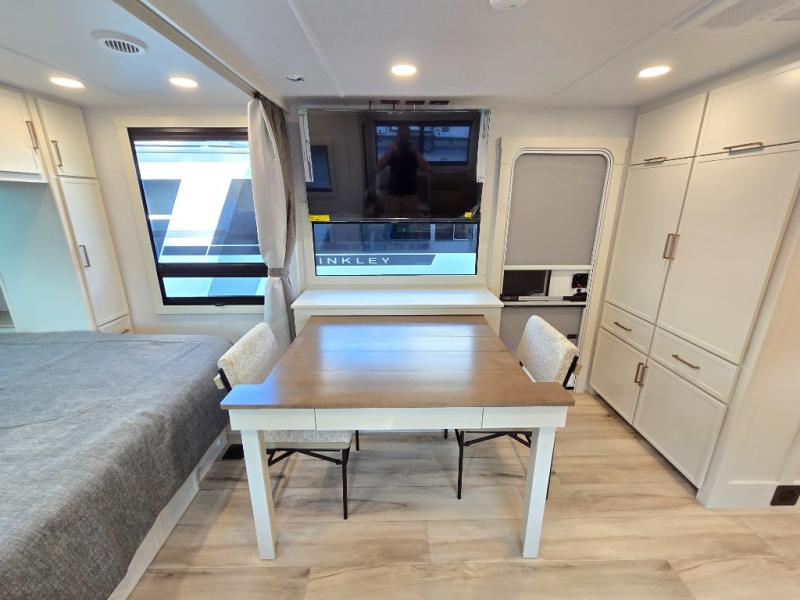 The lightweight Model I travel trailer by Brinkley is the perfect choice for those looking for an easy tow and at-home comforts! There is a drop-frame chassis, high-performance Road Armor suspension equalizer system, and Demco EZ Latch trailer coupler that automatically latches when dropped onto a hitch ball without the need of a safety pin. Additional exterior features include square Euro frameless windows, automotive-grade paint, full-width LED strip lighting in the pass-thru, and a pet & property security campside tie-down to keep your gear and furry friends safe. Inside, you'll be wowed by Brinkley's CraftSense wood trim construction, residential solid surface kitchen countertops, dimmable bedroom lights, and marine-grade neon LED shower lighting to name a few stand-out features!