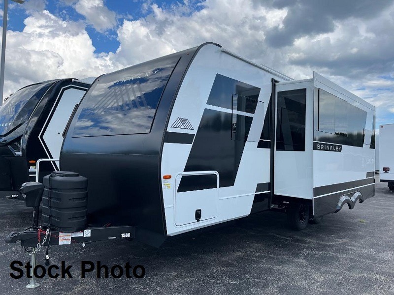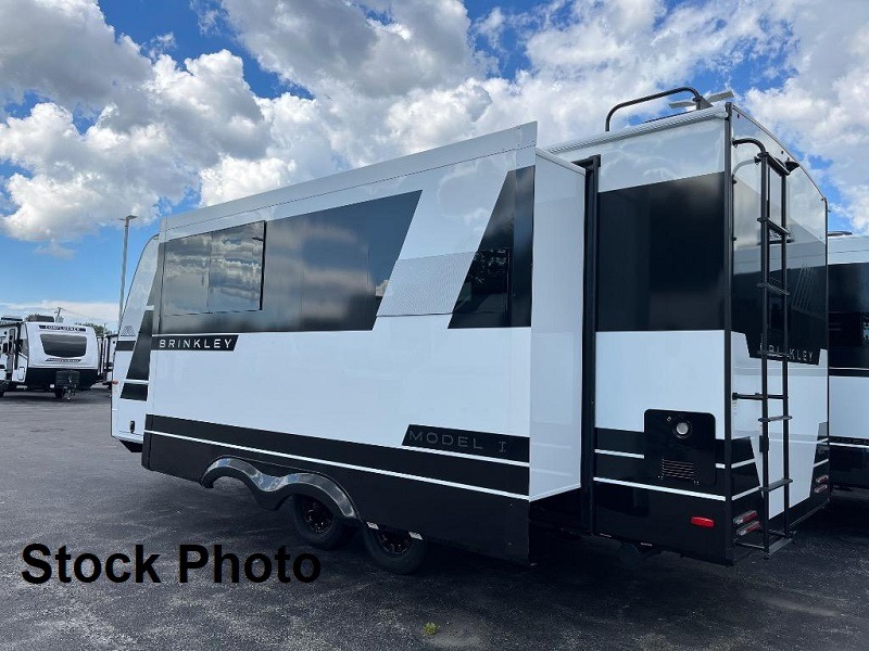 The lightweight Model I travel trailer by Brinkley is the perfect choice for those looking for an easy tow and at-home comforts! There is a drop-frame chassis, high-performance Road Armor suspension equalizer system, and Demco EZ Latch trailer coupler that automatically latches when dropped onto a hitch ball without the need of a safety pin. Additional exterior features include square Euro frameless windows, automotive-grade paint, full-width LED strip lighting in the pass-thru, and a pet & property security campside tie-down to keep your gear and furry friends safe. Inside, you'll be wowed by Brinkley's CraftSense wood trim construction, residential solid surface kitchen countertops, dimmable bedroom lights, and marine-grade neon LED shower lighting to name a few stand-out features!