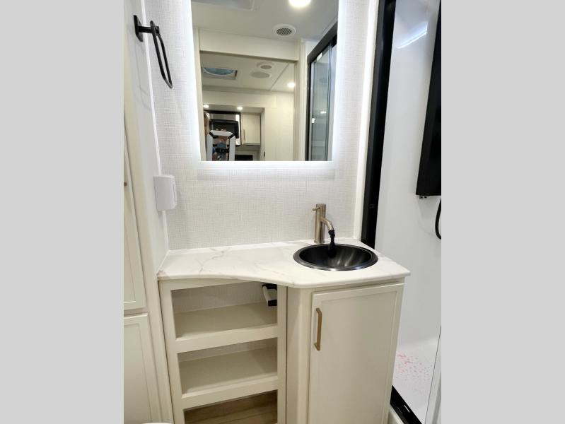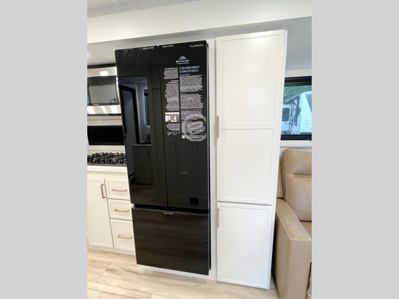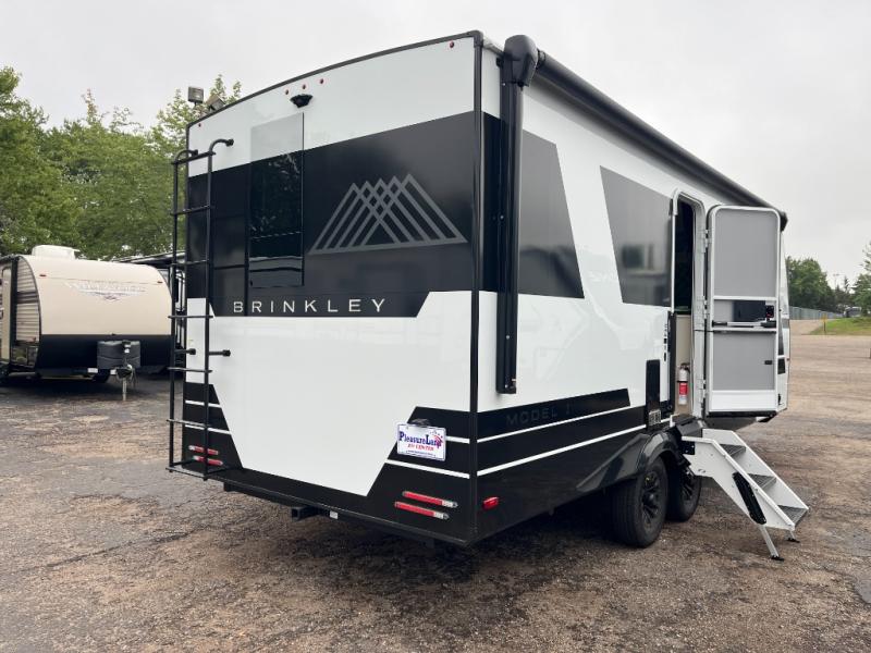 The lightweight Model I travel trailer by Brinkley is the perfect choice for those looking for an easy tow and at-home comforts! There is a drop-frame chassis, high-performance Road Armor suspension equalizer system, and Demco EZ Latch trailer coupler that automatically latches when dropped onto a hitch ball without the need of a safety pin. Additional exterior features include square Euro frameless windows, automotive-grade paint, full-width LED strip lighting in the pass-thru, and a pet & property security campside tie-down to keep your gear and furry friends safe. Inside, you'll be wowed by Brinkley's CraftSense wood trim construction, residential solid surface kitchen countertops, dimmable bedroom lights, and marine-grade neon LED shower lighting to name a few stand-out features!
