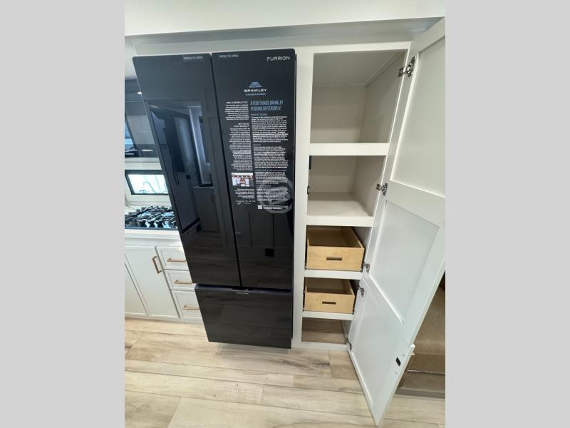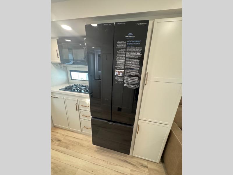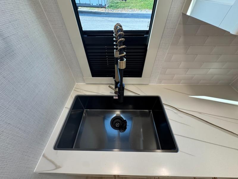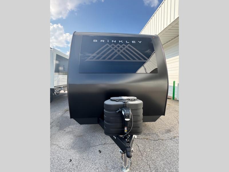 The lightweight Model I travel trailer by Brinkley is the perfect choice for those looking for an easy tow and at-home comforts! There is a drop-frame chassis, high-performance Road Armor suspension equalizer system, and Demco EZ Latch trailer coupler that automatically latches when dropped onto a hitch ball without the need of a safety pin. Additional exterior features include square Euro frameless windows, automotive-grade paint, full-width LED strip lighting in the pass-thru, and a pet & property security campside tie-down to keep your gear and furry friends safe. Inside, you'll be wowed by Brinkley's CraftSense wood trim construction, residential solid surface kitchen countertops, dimmable bedroom lights, and marine-grade neon LED shower lighting to name a few stand-out features!