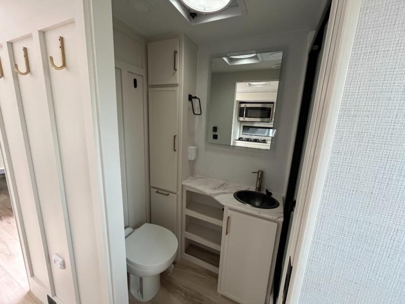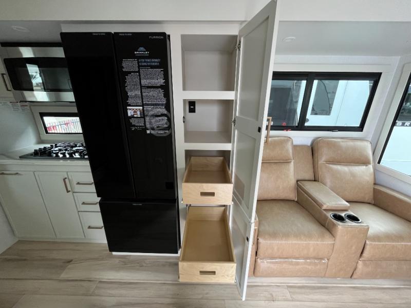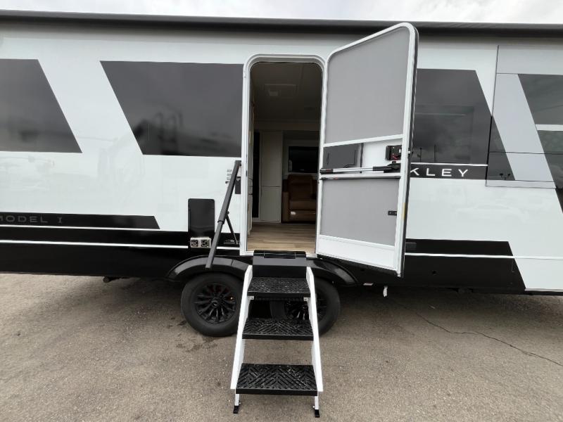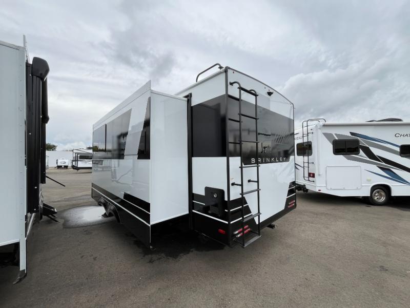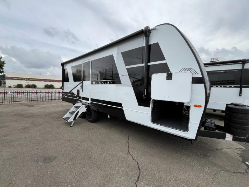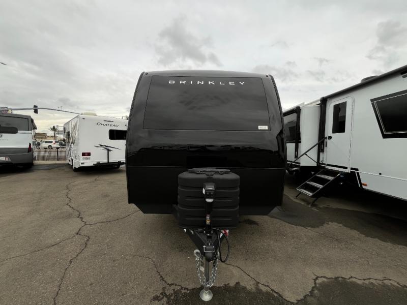 The lightweight Model I travel trailer by Brinkley is the perfect choice for those looking for an easy tow and at-home comforts! There is a drop-frame chassis, high-performance Road Armor suspension equalizer system, and Demco EZ Latch trailer coupler that automatically latches when dropped onto a hitch ball without the need of a safety pin. Additional exterior features include square Euro frameless windows, automotive-grade paint, full-width LED strip lighting in the pass-thru, and a pet & property security campside tie-down to keep your gear and furry friends safe. Inside, you'll be wowed by Brinkley's CraftSense wood trim construction, residential solid surface kitchen countertops, dimmable bedroom lights, and marine-grade neon LED shower lighting to name a few stand-out features!