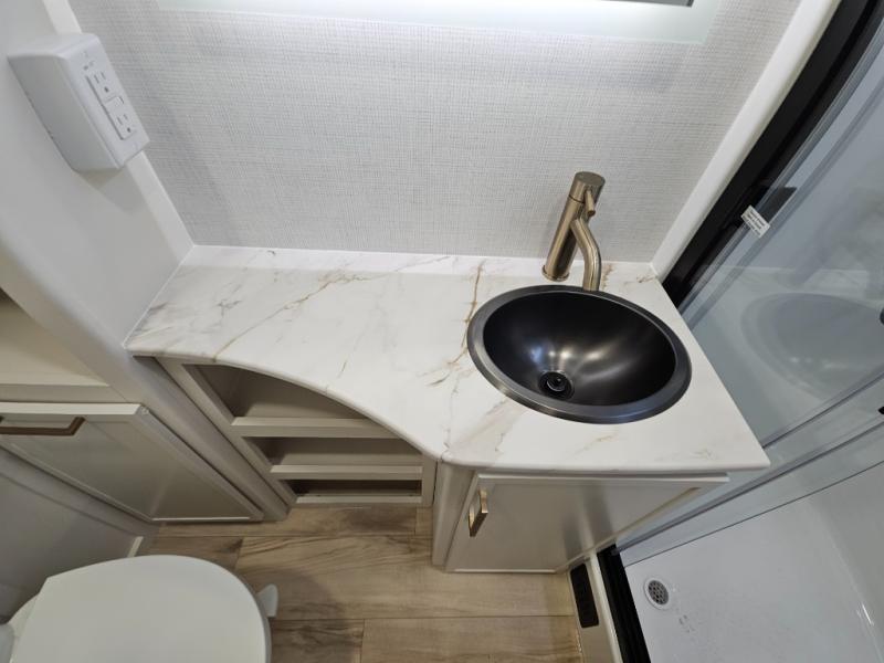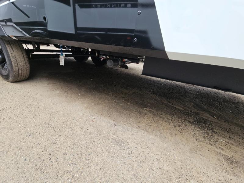 The lightweight Model I travel trailer by Brinkley is the perfect choice for those looking for an easy tow and at-home comforts! There is a drop-frame chassis, high-performance Road Armor suspension equalizer system, and Demco EZ Latch trailer coupler that automatically latches when dropped onto a hitch ball without the need of a safety pin. Additional exterior features include square Euro frameless windows, automotive-grade paint, full-width LED strip lighting in the pass-thru, and a pet & property security campside tie-down to keep your gear and furry friends safe. Inside, you'll be wowed by Brinkley's CraftSense wood trim construction, residential solid surface kitchen countertops, dimmable bedroom lights, and marine-grade neon LED shower lighting to name a few stand-out features!