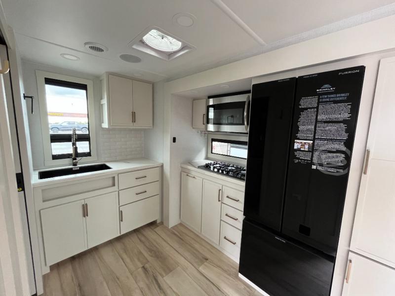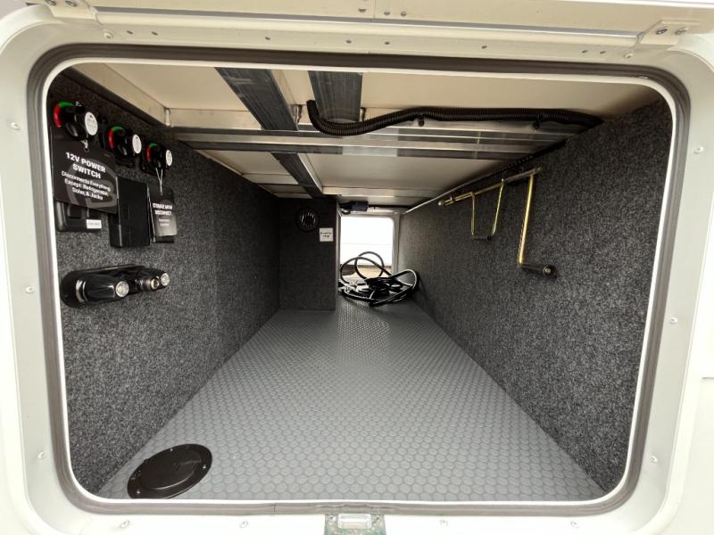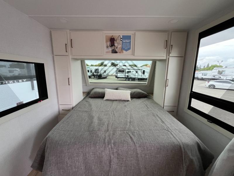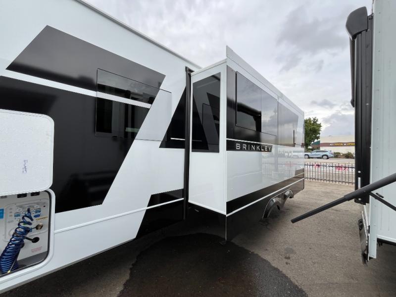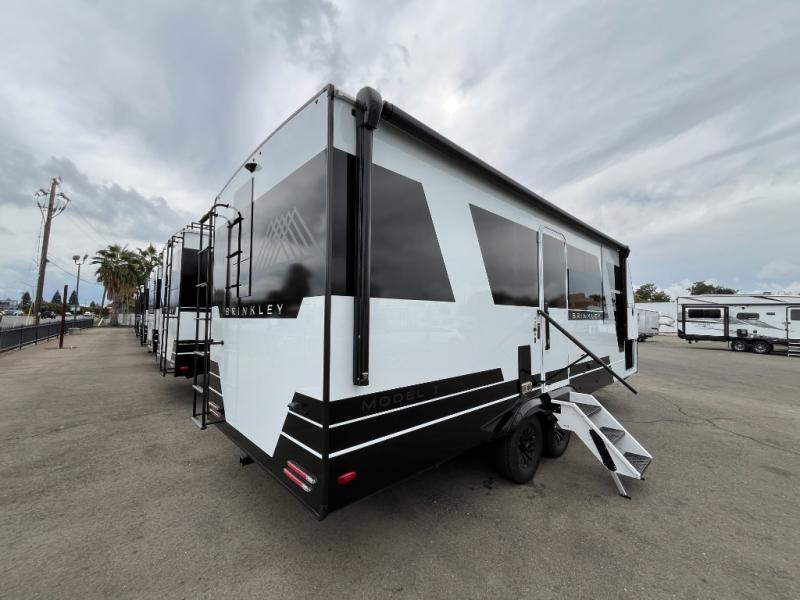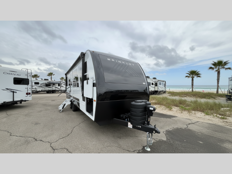 The lightweight Model I travel trailer by Brinkley is the perfect choice for those looking for an easy tow and at-home comforts! There is a drop-frame chassis, high-performance Road Armor suspension equalizer system, and Demco EZ Latch trailer coupler that automatically latches when dropped onto a hitch ball without the need of a safety pin. Additional exterior features include square Euro frameless windows, automotive-grade paint, full-width LED strip lighting in the pass-thru, and a pet & property security campside tie-down to keep your gear and furry friends safe. Inside, you'll be wowed by Brinkley's CraftSense wood trim construction, residential solid surface kitchen countertops, dimmable bedroom lights, and marine-grade neon LED shower lighting to name a few stand-out features!