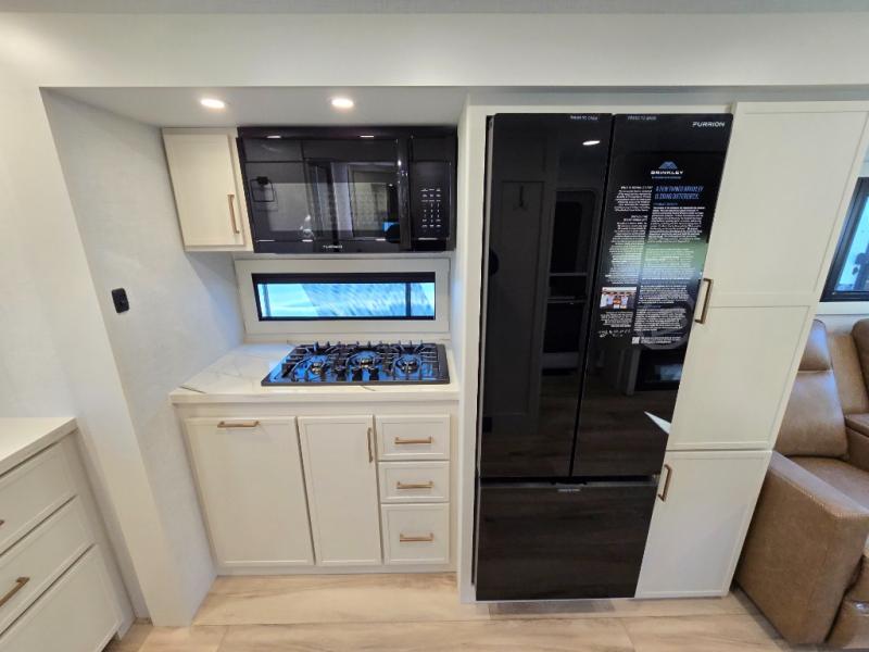 The lightweight Model I travel trailer by Brinkley is the perfect choice for those looking for an easy tow and at-home comforts! There is a drop-frame chassis, high-performance Road Armor suspension equalizer system, and Demco EZ Latch trailer coupler that automatically latches when dropped onto a hitch ball without the need of a safety pin. Additional exterior features include square Euro frameless windows, automotive-grade paint, full-width LED strip lighting in the pass-thru, and a pet & property security campside tie-down to keep your gear and furry friends safe. Inside, you'll be wowed by Brinkley's CraftSense wood trim construction, residential solid surface kitchen countertops, dimmable bedroom lights, and marine-grade neon LED shower lighting to name a few stand-out features!