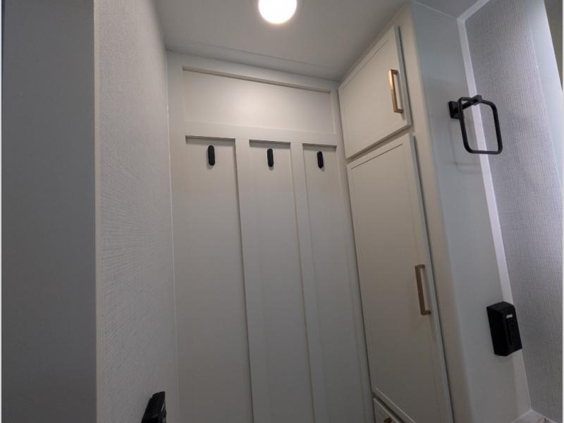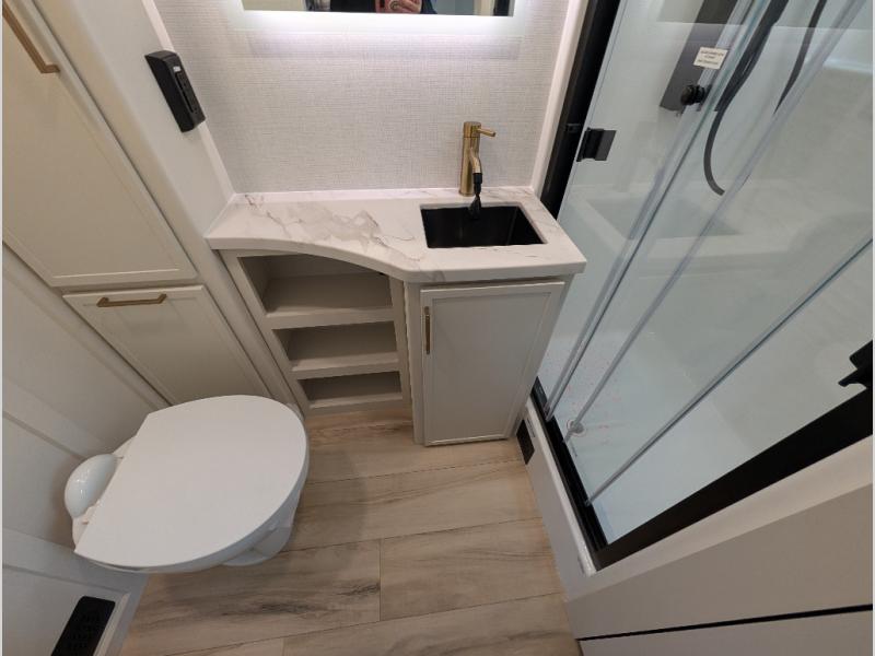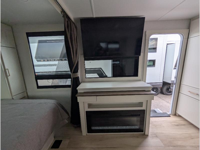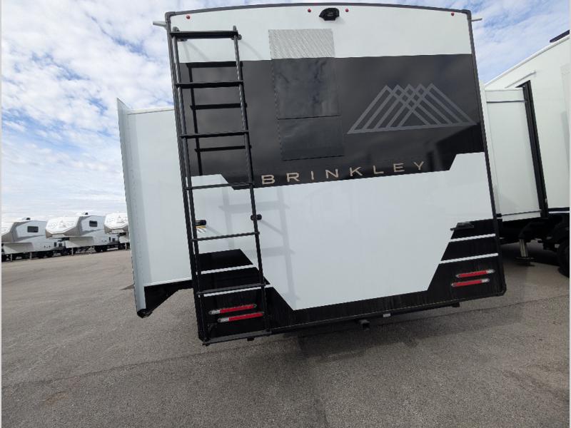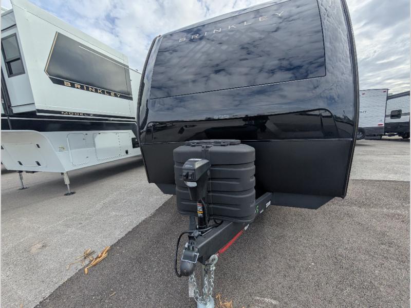 The lightweight Model I travel trailer by Brinkley is the perfect choice for those looking for an easy tow and at-home comforts! There is a drop-frame chassis, high-performance Road Armor suspension equalizer system, and Demco EZ Latch trailer coupler that automatically latches when dropped onto a hitch ball without the need of a safety pin. Additional exterior features include square Euro frameless windows, automotive-grade paint, full-width LED strip lighting in the pass-thru, and a pet & property security campside tie-down to keep your gear and furry friends safe. Inside, you'll be wowed by Brinkley's CraftSense wood trim construction, residential solid surface kitchen countertops, dimmable bedroom lights, and marine-grade neon LED shower lighting to name a few stand-out features!