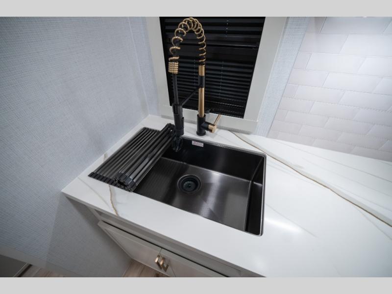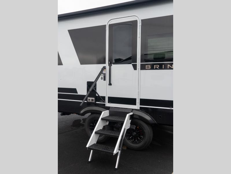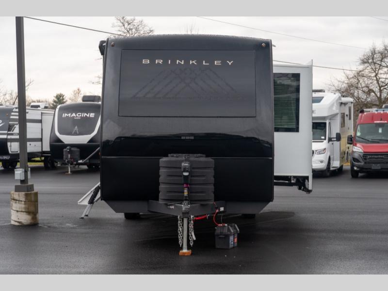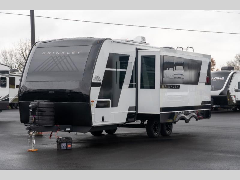 The lightweight Model I travel trailer by Brinkley is the perfect choice for those looking for an easy tow and at-home comforts! There is a drop-frame chassis, high-performance Road Armor suspension equalizer system, and Demco EZ Latch trailer coupler that automatically latches when dropped onto a hitch ball without the need of a safety pin. Additional exterior features include square Euro frameless windows, automotive-grade paint, full-width LED strip lighting in the pass-thru, and a pet & property security campside tie-down to keep your gear and furry friends safe. Inside, you'll be wowed by Brinkley's CraftSense wood trim construction, residential solid surface kitchen countertops, dimmable bedroom lights, and marine-grade neon LED shower lighting to name a few stand-out features!