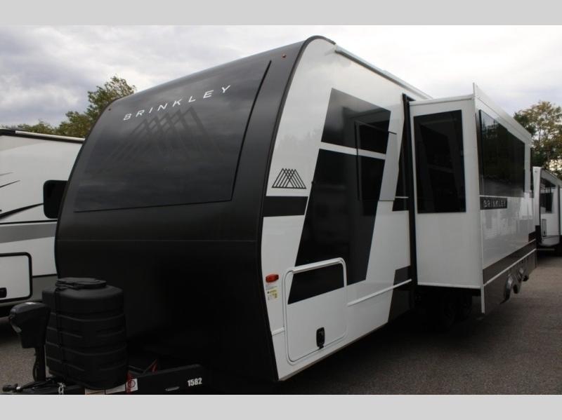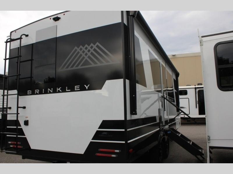 The lightweight Model I travel trailer by Brinkley is the perfect choice for those looking for an easy tow and at-home comforts! There is a drop-frame chassis, high-performance Road Armor suspension equalizer system, and Demco EZ Latch trailer coupler that automatically latches when dropped onto a hitch ball without the need of a safety pin. Additional exterior features include square Euro frameless windows, automotive-grade paint, full-width LED strip lighting in the pass-thru, and a pet & property security campside tie-down to keep your gear and furry friends safe. Inside, you'll be wowed by Brinkley's CraftSense wood trim construction, residential solid surface kitchen countertops, dimmable bedroom lights, and marine-grade neon LED shower lighting to name a few stand-out features!