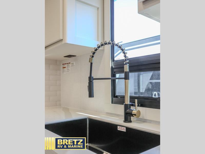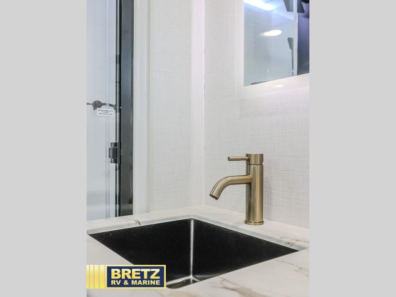 The lightweight Model I travel trailer by Brinkley is the perfect choice for those looking for an easy tow and at-home comforts! There is a drop-frame chassis, high-performance Road Armor suspension equalizer system, and Demco EZ Latch trailer coupler that automatically latches when dropped onto a hitch ball without the need of a safety pin. Additional exterior features include square Euro frameless windows, automotive-grade paint, full-width LED strip lighting in the pass-thru, and a pet & property security campside tie-down to keep your gear and furry friends safe. Inside, you'll be wowed by Brinkley's CraftSense wood trim construction, residential solid surface kitchen countertops, dimmable bedroom lights, and marine-grade neon LED shower lighting to name a few stand-out features!