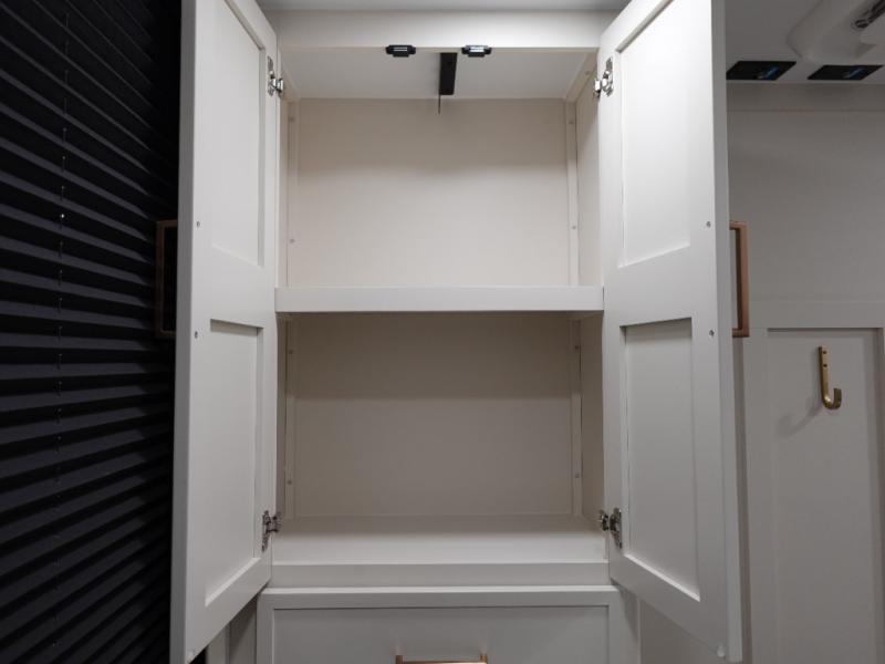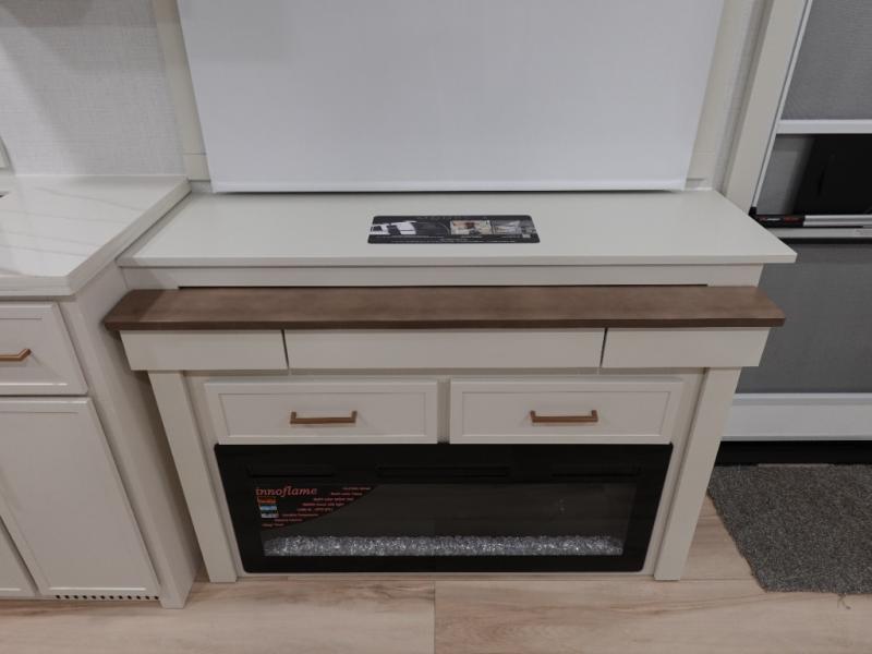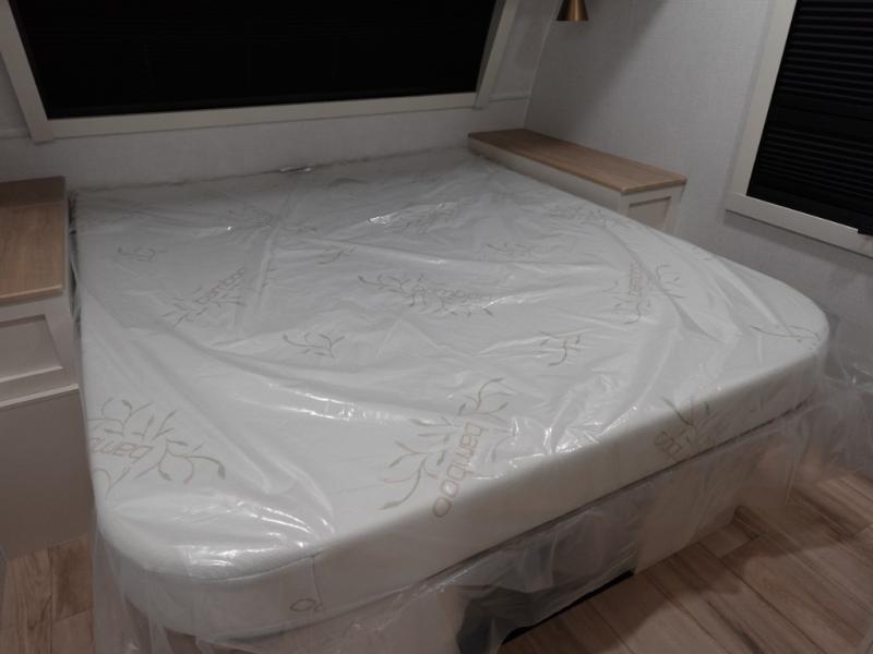 One look at this travel trailer and you'll be sold! The full rear bath features a spacious 42" x 30" shower with a built-in seat and Maxxair fan to name a few comforts. The front private bedroom features a 66" x 80" king bed with a MaxSpace Split-Level Wardrobe underneath to store shoes, clothes, and more! A slide out in the combined living area and kitchen makes your space more open, and you'll enjoy relaxing on the theater seating here in the evenings. The full kitchen includes a three burner stovetop, residential 30" convection microwave, 12 cu. ft. 12V refrigerator, plus a trash bin and Stow N' Go paper towel holder for added convenience. You can choose to eat outdoors under the 19' electric awning with LED lights or stay inside to dine at the pull-out dining table with a drawer for added storage!
