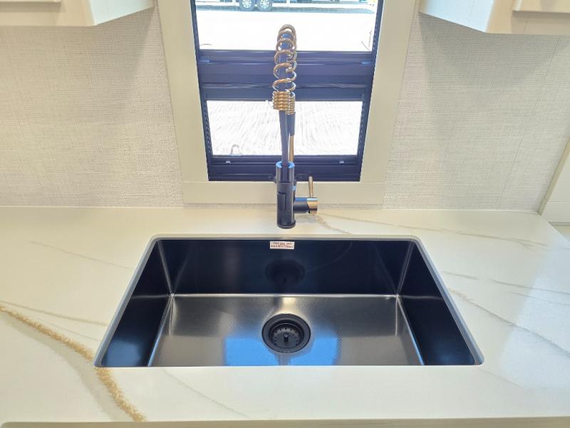 The lightweight Model I travel trailer by Brinkley is the perfect choice for those looking for an easy tow and at-home comforts! There is a drop-frame chassis, high-performance Road Armor suspension equalizer system, and Demco EZ Latch trailer coupler that automatically latches when dropped onto a hitch ball without the need of a safety pin. Additional exterior features include square Euro frameless windows, automotive-grade paint, full-width LED strip lighting in the pass-thru, and a pet & property security campside tie-down to keep your gear and furry friends safe. Inside, you'll be wowed by Brinkley's CraftSense wood trim construction, residential solid surface kitchen countertops, dimmable bedroom lights, and marine-grade neon LED shower lighting to name a few stand-out features!