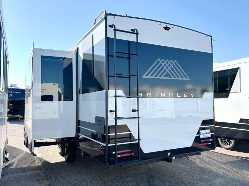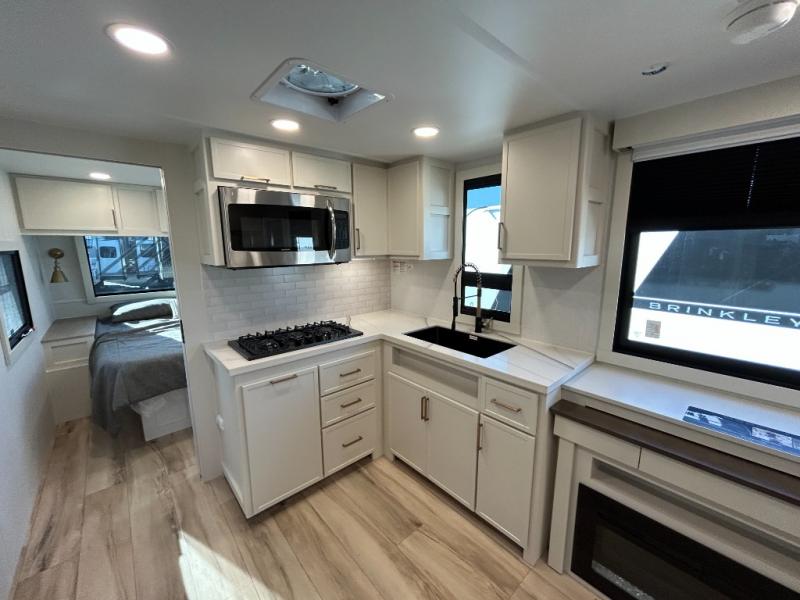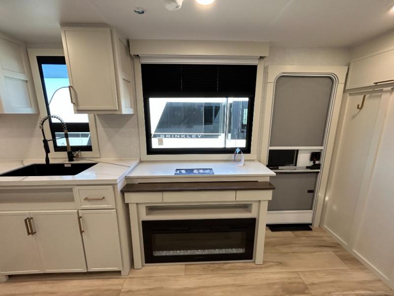 The lightweight Model I travel trailer by Brinkley is the perfect choice for those looking for an easy tow and at-home comforts! There is a drop-frame chassis, high-performance Road Armor suspension equalizer system, and Demco EZ Latch trailer coupler that automatically latches when dropped onto a hitch ball without the need of a safety pin. Additional exterior features include square Euro frameless windows, automotive-grade paint, full-width LED strip lighting in the pass-thru, and a pet & property security campside tie-down to keep your gear and furry friends safe. Inside, you'll be wowed by Brinkley's CraftSense wood trim construction, residential solid surface kitchen countertops, dimmable bedroom lights, and marine-grade neon LED shower lighting to name a few stand-out features!
