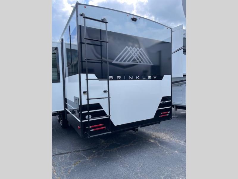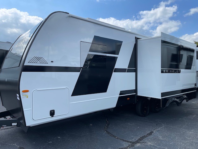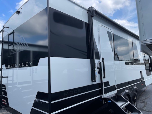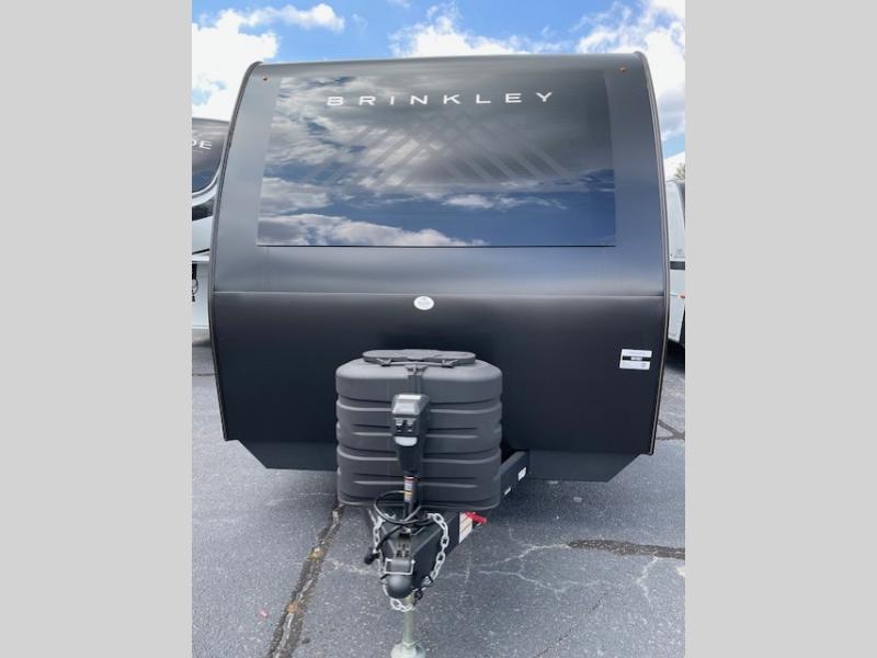 The lightweight Model I travel trailer by Brinkley is the perfect choice for those looking for an easy tow and at-home comforts! There is a drop-frame chassis, high-performance Road Armor suspension equalizer system, and Demco EZ Latch trailer coupler that automatically latches when dropped onto a hitch ball without the need of a safety pin. Additional exterior features include square Euro frameless windows, automotive-grade paint, full-width LED strip lighting in the pass-thru, and a pet & property security campside tie-down to keep your gear and furry friends safe. Inside, you'll be wowed by Brinkley's CraftSense wood trim construction, residential solid surface kitchen countertops, dimmable bedroom lights, and marine-grade neon LED shower lighting to name a few stand-out features!