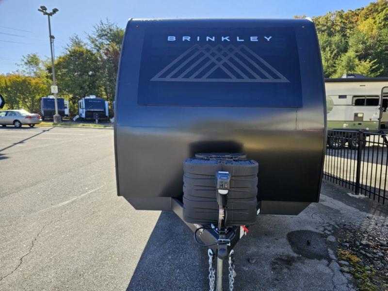 The lightweight Model I travel trailer by Brinkley is the perfect choice for those looking for an easy tow and at-home comforts! There is a drop-frame chassis, high-performance Road Armor suspension equalizer system, and Demco EZ Latch trailer coupler that automatically latches when dropped onto a hitch ball without the need of a safety pin. Additional exterior features include square Euro frameless windows, automotive-grade paint, full-width LED strip lighting in the pass-thru, and a pet & property security campside tie-down to keep your gear and furry friends safe. Inside, you'll be wowed by Brinkley's CraftSense wood trim construction, residential solid surface kitchen countertops, dimmable bedroom lights, and marine-grade neon LED shower lighting to name a few stand-out features!