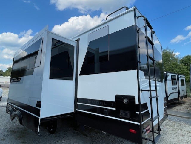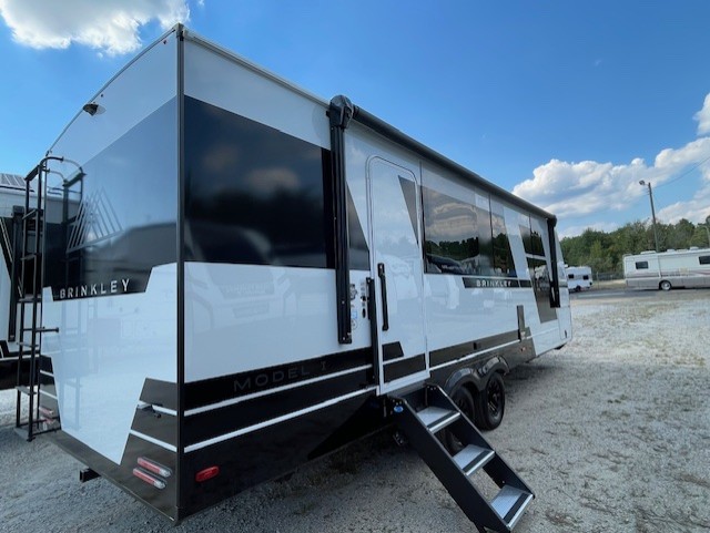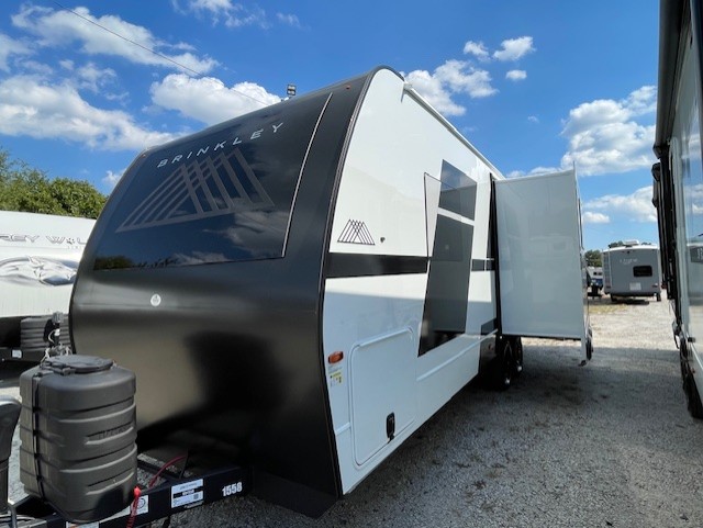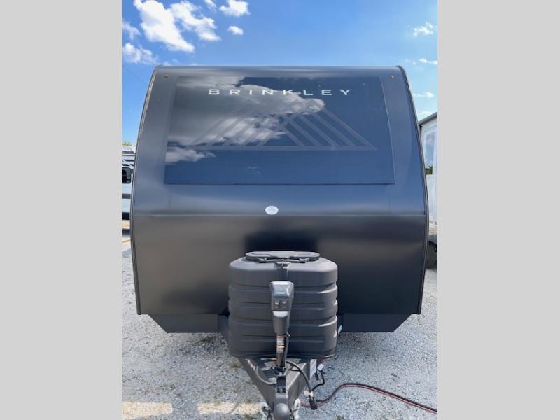 The lightweight Model I travel trailer by Brinkley is the perfect choice for those looking for an easy tow and at-home comforts! There is a drop-frame chassis, high-performance Road Armor suspension equalizer system, and Demco EZ Latch trailer coupler that automatically latches when dropped onto a hitch ball without the need of a safety pin. Additional exterior features include square Euro frameless windows, automotive-grade paint, full-width LED strip lighting in the pass-thru, and a pet & property security campside tie-down to keep your gear and furry friends safe. Inside, you'll be wowed by Brinkley's CraftSense wood trim construction, residential solid surface kitchen countertops, dimmable bedroom lights, and marine-grade neon LED shower lighting to name a few stand-out features!