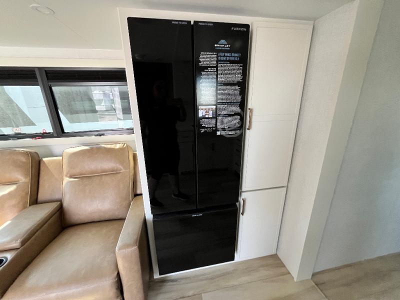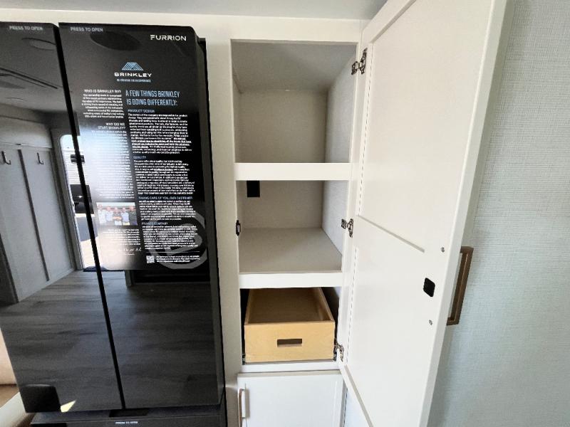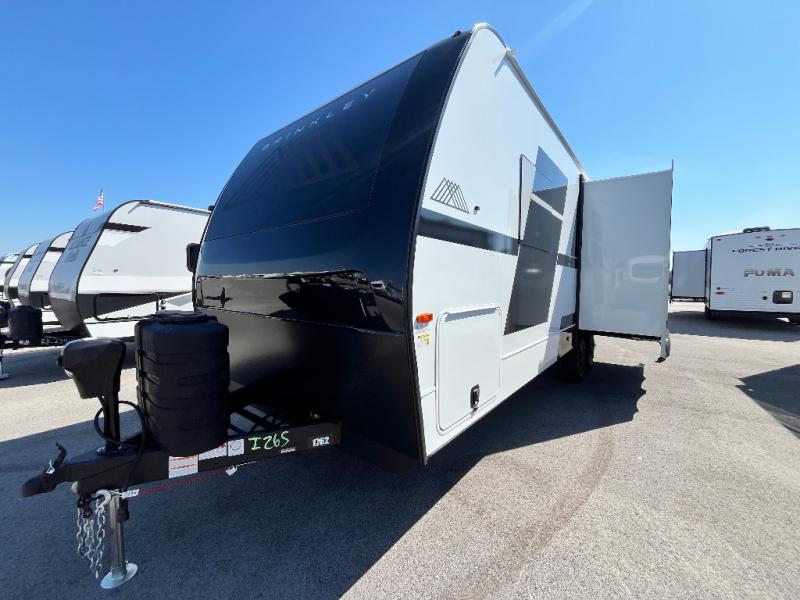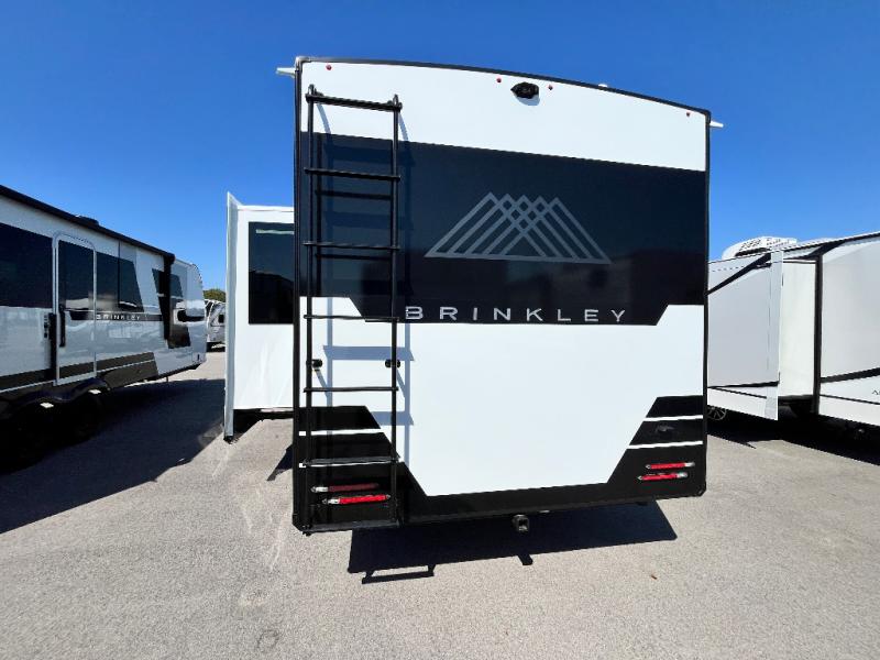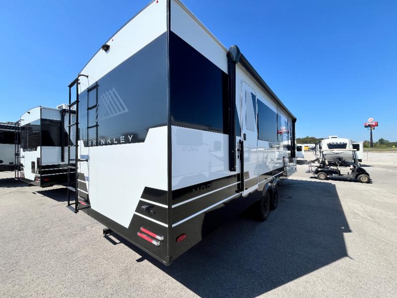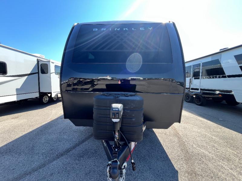 The lightweight Model I travel trailer by Brinkley is the perfect choice for those looking for an easy tow and at-home comforts! There is a drop-frame chassis, high-performance Road Armor suspension equalizer system, and Demco EZ Latch trailer coupler that automatically latches when dropped onto a hitch ball without the need of a safety pin. Additional exterior features include square Euro frameless windows, automotive-grade paint, full-width LED strip lighting in the pass-thru, and a pet & property security campside tie-down to keep your gear and furry friends safe. Inside, you'll be wowed by Brinkley's CraftSense wood trim construction, residential solid surface kitchen countertops, dimmable bedroom lights, and marine-grade neon LED shower lighting to name a few stand-out features!