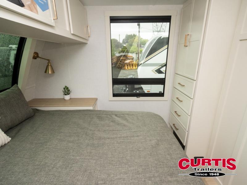 The lightweight Model I travel trailer by Brinkley is the perfect choice for those looking for an easy tow and at-home comforts! There is a drop-frame chassis, high-performance Road Armor suspension equalizer system, and Demco EZ Latch trailer coupler that automatically latches when dropped onto a hitch ball without the need of a safety pin. Additional exterior features include square Euro frameless windows, automotive-grade paint, full-width LED strip lighting in the pass-thru, and a pet & property security campside tie-down to keep your gear and furry friends safe. Inside, you'll be wowed by Brinkley's CraftSense wood trim construction, residential solid surface kitchen countertops, dimmable bedroom lights, and marine-grade neon LED shower lighting to name a few stand-out features!