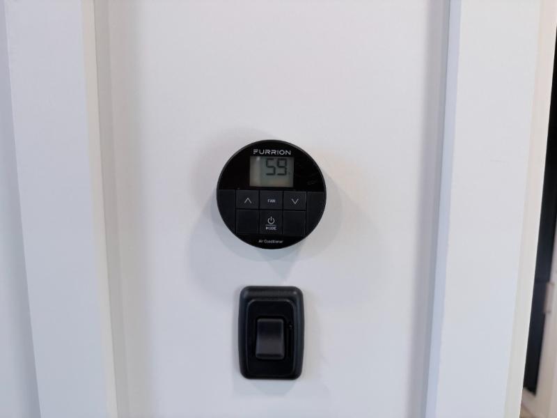 - Dimmable bedroom lights and marine-grade neon LED shower lighting