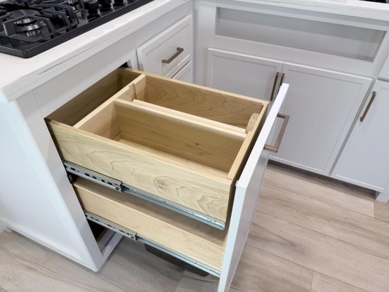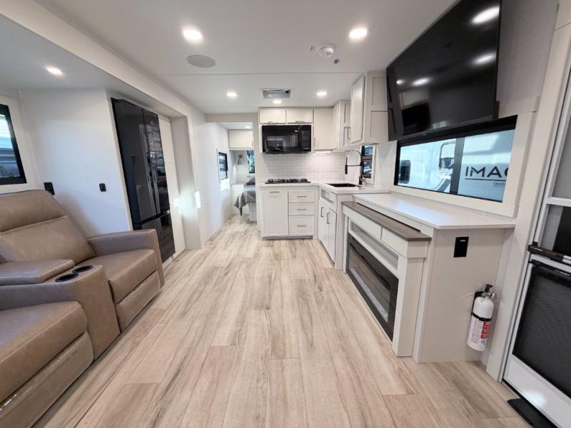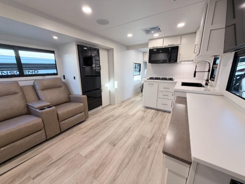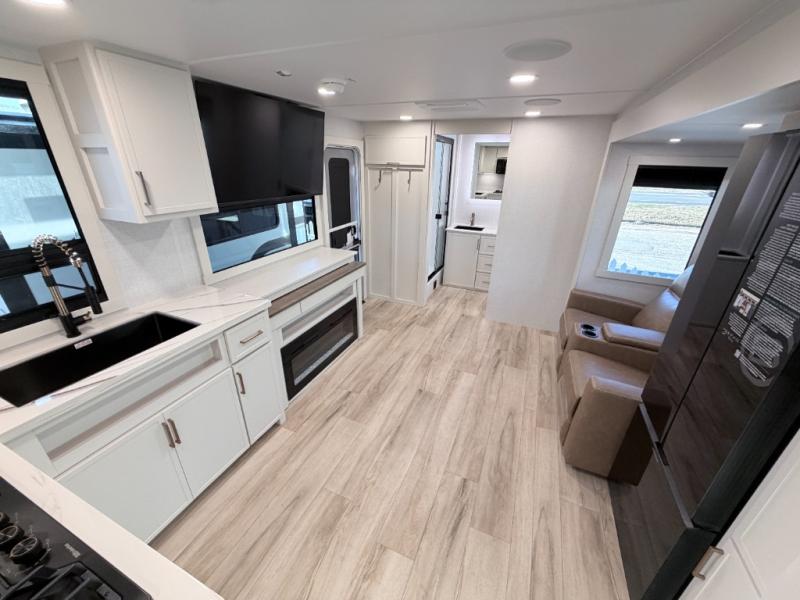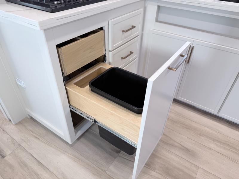 - Open slide-out layout connecting kitchen and living area for spacious feel