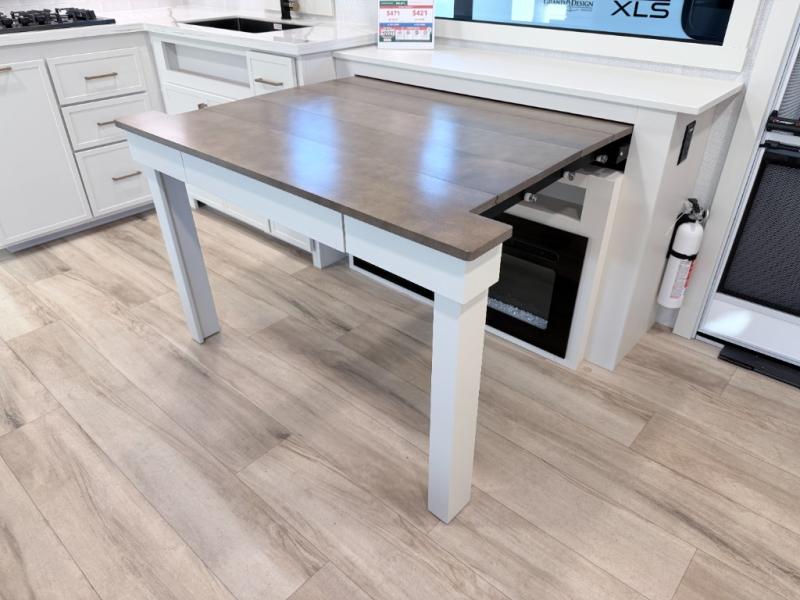 - Pull-out dining table with drawer for added storage and mealtime convenience