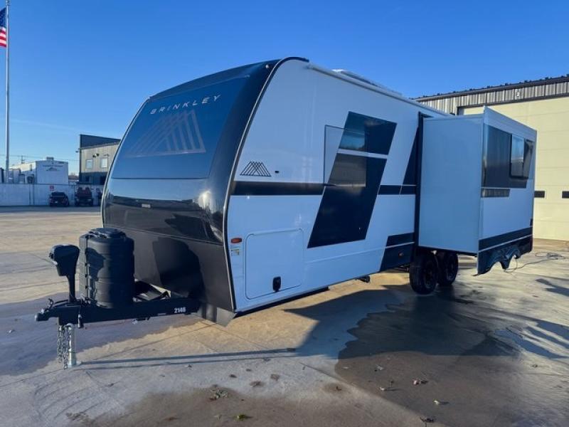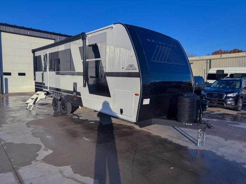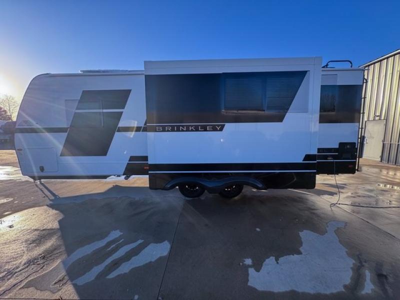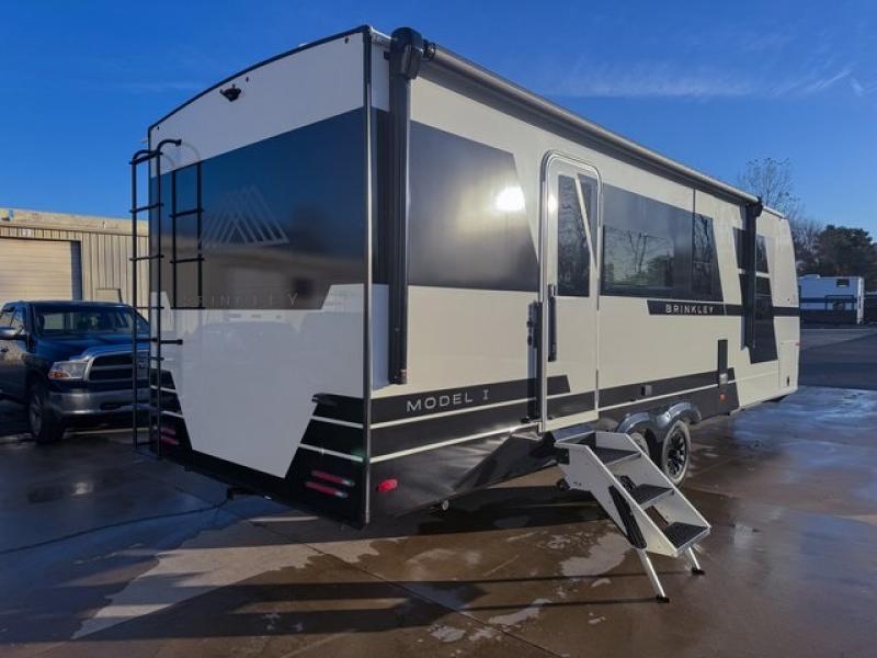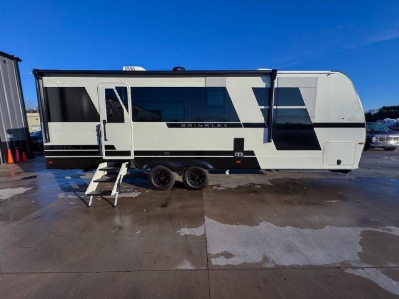The lightweight Model I travel trailer by Brinkley is the perfect choice for those looking for an easy tow and at-home comforts! There is a drop-frame chassis, high-performance Road Armor suspension equalizer system, and Demco EZ Latch trailer coupler that automatically latches when dropped onto a hitch ball without the need of a safety pin. Additional exterior features include square Euro frameless windows, automotive-grade paint, full-width LED strip lighting in the pass-thru, and a pet & property security campside tie-down to keep your gear and furry friends safe. Inside, you'll be wowed by Brinkley's CraftSense wood trim construction, residential solid surface kitchen countertops, dimmable bedroom lights, and marine-grade neon LED shower lighting to name a few stand-out features!