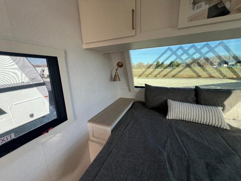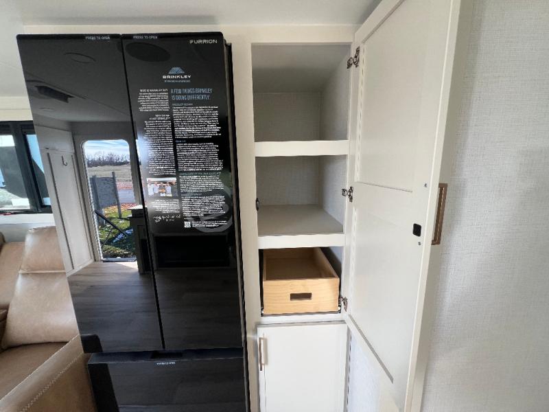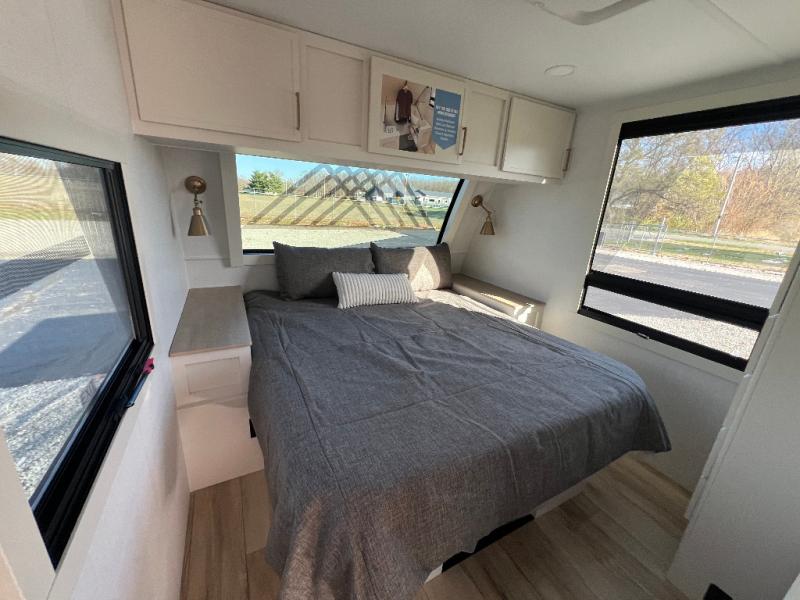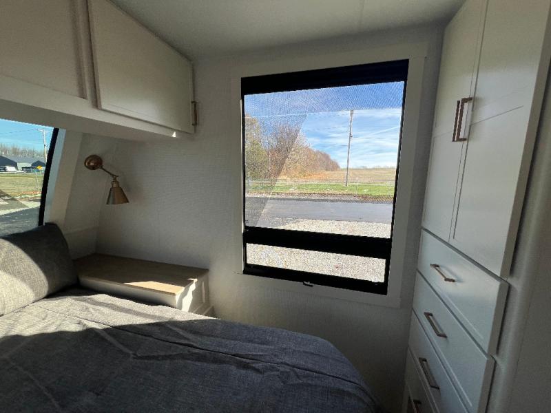 The lightweight Model I travel trailer by Brinkley is the perfect choice for those looking for an easy tow and at-home comforts! There is a drop-frame chassis, high-performance Road Armor suspension equalizer system, and Demco EZ Latch trailer coupler that automatically latches when dropped onto a hitch ball without the need of a safety pin. Additional exterior features include square Euro frameless windows, automotive-grade paint, full-width LED strip lighting in the pass-thru, and a pet & property security campside tie-down to keep your gear and furry friends safe. Inside, you'll be wowed by Brinkley's CraftSense wood trim construction, residential solid surface kitchen countertops, dimmable bedroom lights, and marine-grade neon LED shower lighting to name a few stand-out features!