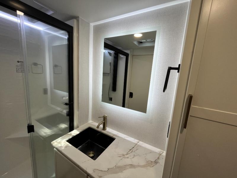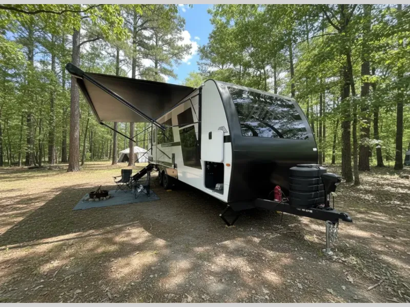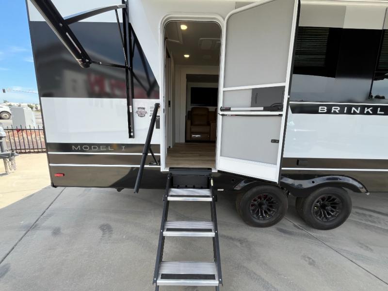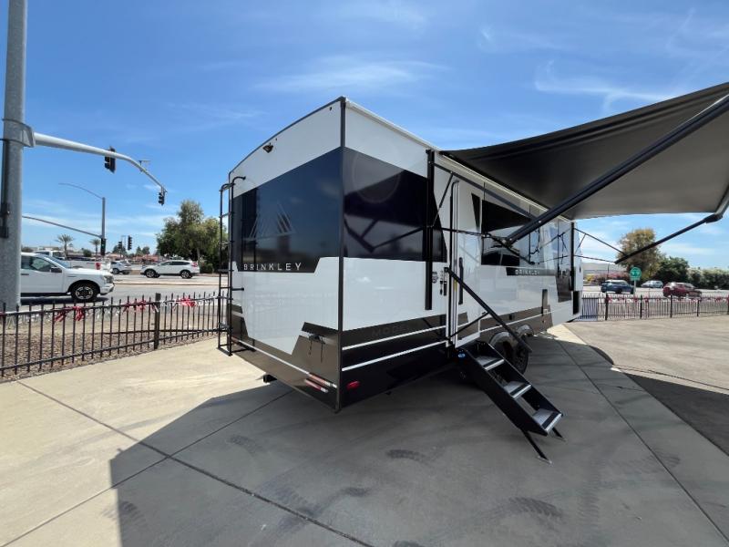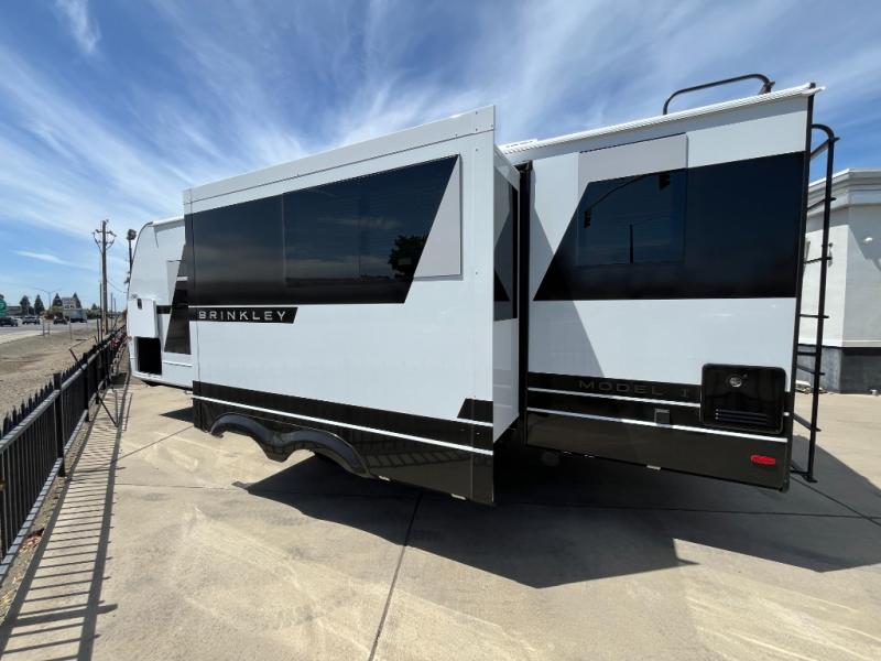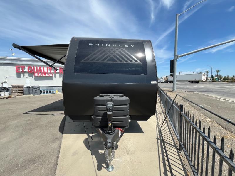 The lightweight Model I travel trailer by Brinkley is the perfect choice for those looking for an easy tow and at-home comforts! There is a drop-frame chassis, high-performance Road Armor suspension equalizer system, and Demco EZ Latch trailer coupler that automatically latches when dropped onto a hitch ball without the need of a safety pin. Additional exterior features include square Euro frameless windows, automotive-grade paint, full-width LED strip lighting in the pass-thru, and a pet & property security campside tie-down to keep your gear and furry friends safe. Inside, you'll be wowed by Brinkley's CraftSense wood trim construction, residential solid surface kitchen countertops, dimmable bedroom lights, and marine-grade neon LED shower lighting to name a few stand-out features!
