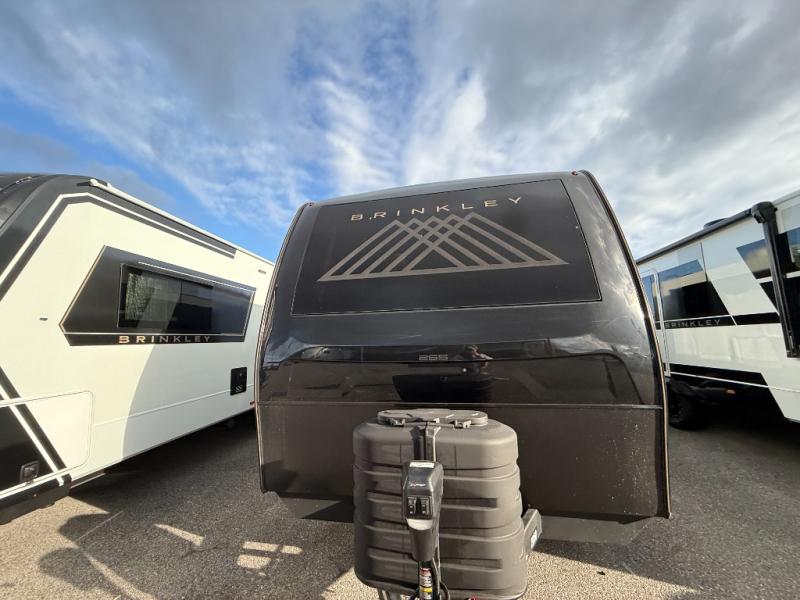 The lightweight Model I travel trailer by Brinkley is the perfect choice for those looking for an easy tow and at-home comforts! There is a drop-frame chassis, high-performance Road Armor suspension equalizer system, and Demco EZ Latch trailer coupler that automatically latches when dropped onto a hitch ball without the need of a safety pin. Additional exterior features include square Euro frameless windows, automotive-grade paint, full-width LED strip lighting in the pass-thru, and a pet & property security campside tie-down to keep your gear and furry friends safe. Inside, you'll be wowed by Brinkley's CraftSense wood trim construction, residential solid surface kitchen countertops, dimmable bedroom lights, and marine-grade neon LED shower lighting to name a few stand-out features!