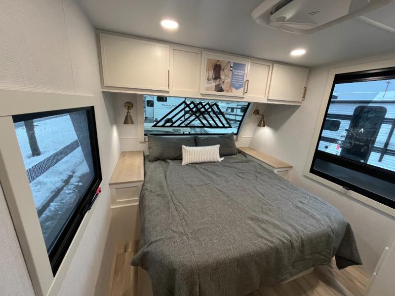 The lightweight Model I travel trailer by Brinkley is the perfect choice for those looking for an easy tow and at-home comforts! There is a drop-frame chassis, high-performance Road Armor suspension equalizer system, and Demco EZ Latch trailer coupler that automatically latches when dropped onto a hitch ball without the need of a safety pin. Additional exterior features include square Euro frameless windows, automotive-grade paint, full-width LED strip lighting in the pass-thru, and a pet & property security campside tie-down to keep your gear and furry friends safe. Inside, you'll be wowed by Brinkley's CraftSense wood trim construction, residential solid surface kitchen countertops, dimmable bedroom lights, and marine-grade neon LED shower lighting to name a few stand-out features!