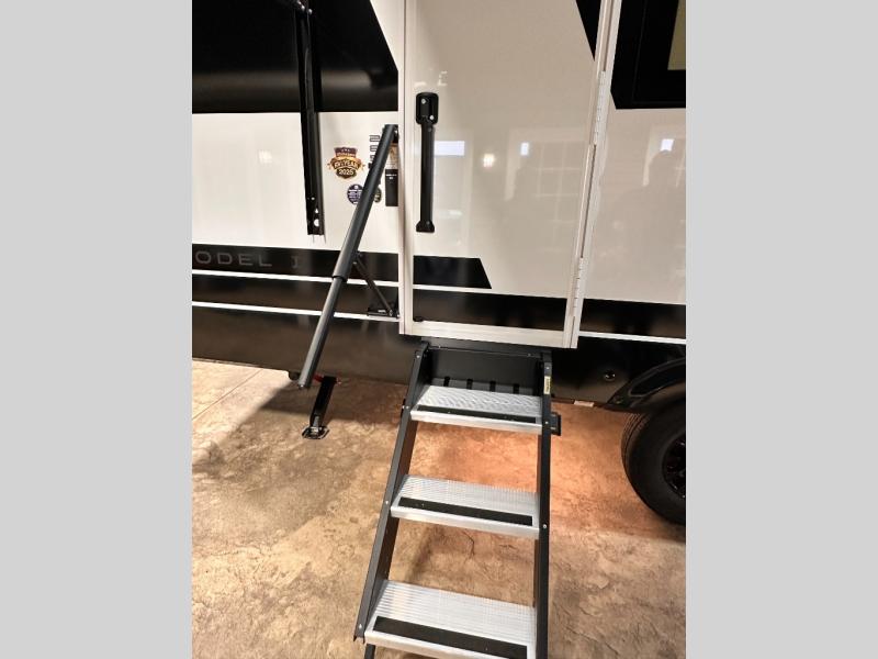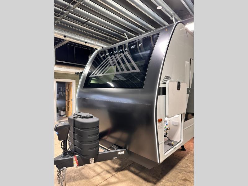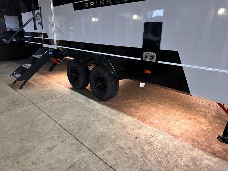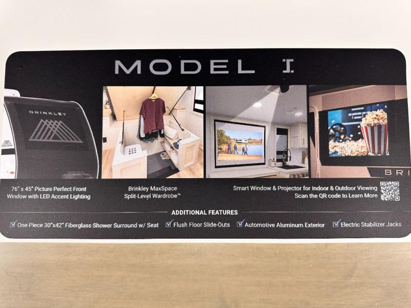 The lightweight Model I travel trailer by Brinkley is the perfect choice for those looking for an easy tow and at-home comforts! There is a drop-frame chassis, high-performance Road Armor suspension equalizer system, and Demco EZ Latch trailer coupler that automatically latches when dropped onto a hitch ball without the need of a safety pin. Additional exterior features include square Euro frameless windows, automotive-grade paint, full-width LED strip lighting in the pass-thru, and a pet & property security campside tie-down to keep your gear and furry friends safe. Inside, you'll be wowed by Brinkley's CraftSense wood trim construction, residential solid surface kitchen countertops, dimmable bedroom lights, and marine-grade neon LED shower lighting to name a few stand-out features!