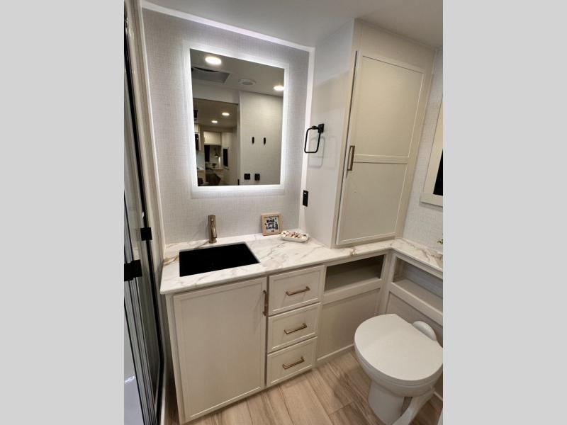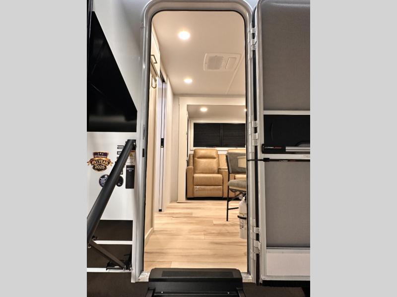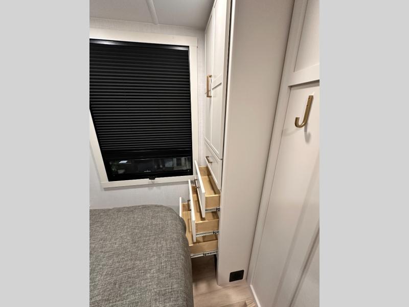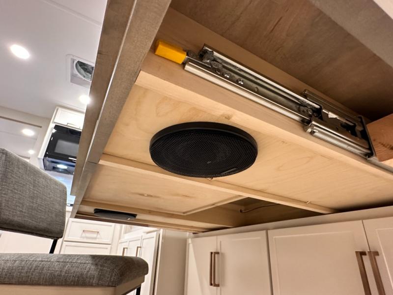 --76" x 45" Picture Perfect Front Window w/ Privacy Shade--Square Euro Frameless Windows--Rockford Fosgate Audio System w/ App Control + Subwoofer Prep--Brinkley CraftSense Construction--Pull-Out Dining Table - Seats up to 4--Dishwasher Prep--King Bed + Huge Nightstands--MaxSpace Split-Level Wardrobe™ w/ hanging closet