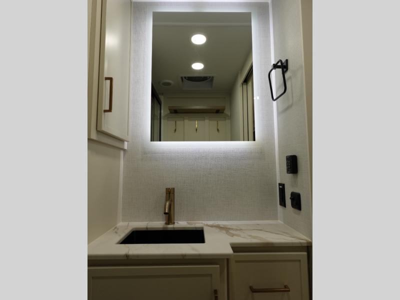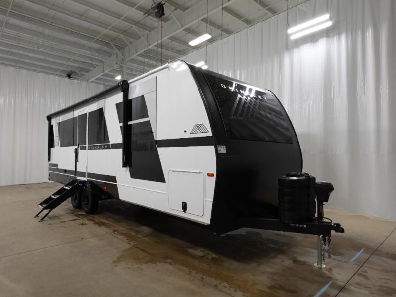 The lightweight Model I travel trailer by Brinkley is the perfect choice for those looking for an easy tow and at-home comforts! There is a drop-frame chassis, high-performance Road Armor suspension equalizer system, and Demco EZ Latch trailer coupler that automatically latches when dropped onto a hitch ball without the need of a safety pin. Additional exterior features include square Euro frameless windows, automotive-grade paint, full-width LED strip lighting in the pass-thru, and a pet & property security campside tie-down to keep your gear and furry friends safe. Inside, you'll be wowed by Brinkley's CraftSense wood trim construction, residential solid surface kitchen countertops, dimmable bedroom lights, and marine-grade neon LED shower lighting to name a few stand-out features!
