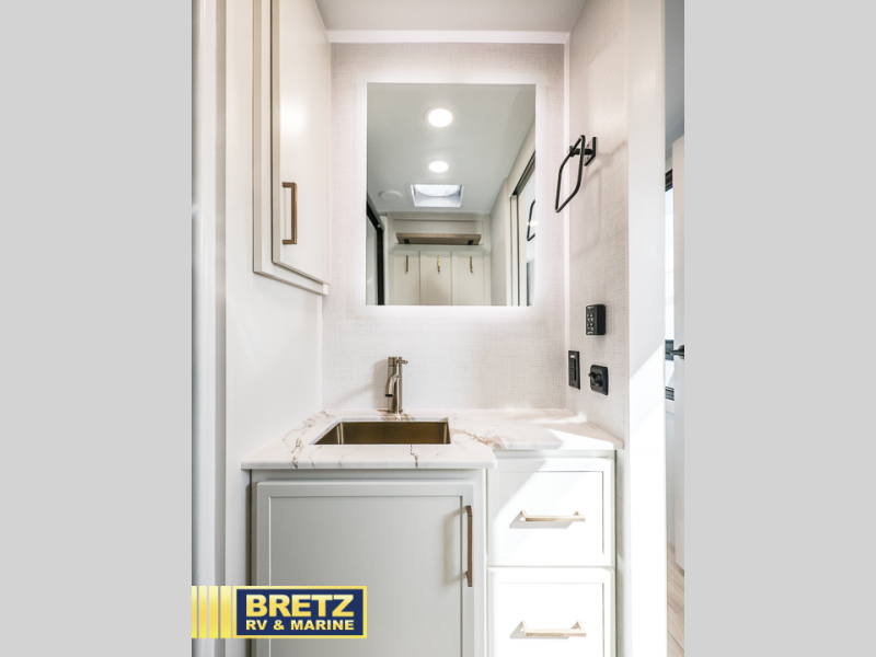 The lightweight Model I travel trailer by Brinkley is the perfect choice for those looking for an easy tow and at-home comforts! There is a drop-frame chassis, high-performance Road Armor suspension equalizer system, and Demco EZ Latch trailer coupler that automatically latches when dropped onto a hitch ball without the need of a safety pin. Additional exterior features include square Euro frameless windows, automotive-grade paint, full-width LED strip lighting in the pass-thru, and a pet & property security campside tie-down to keep your gear and furry friends safe. Inside, you'll be wowed by Brinkley's CraftSense wood trim construction, residential solid surface kitchen countertops, dimmable bedroom lights, and marine-grade neon LED shower lighting to name a few stand-out features!