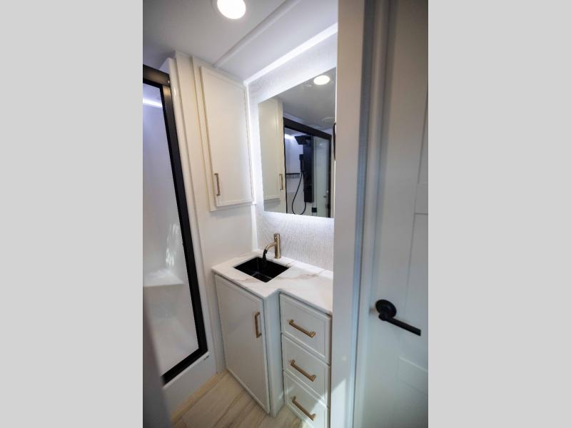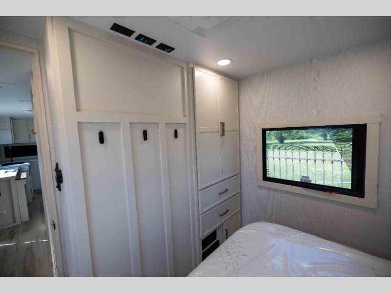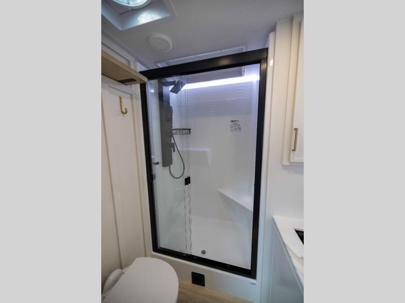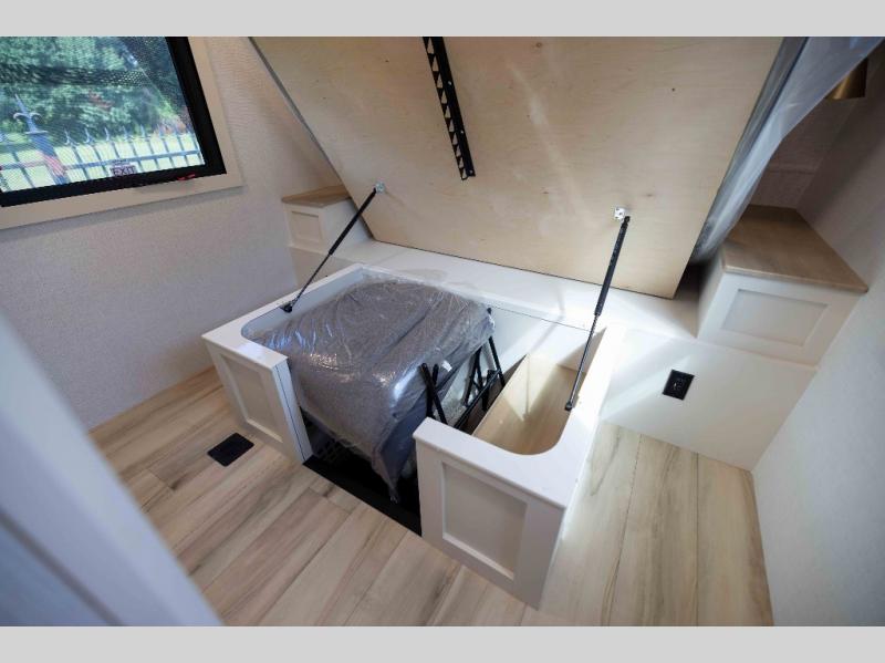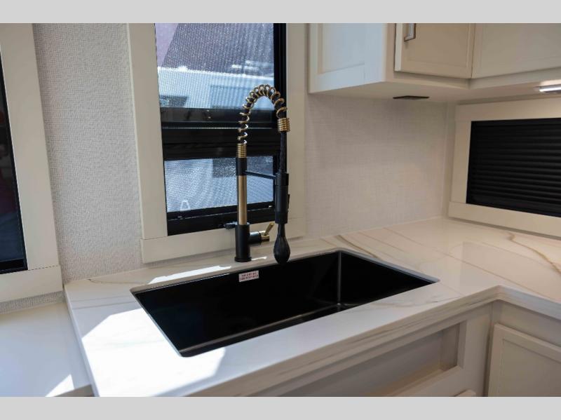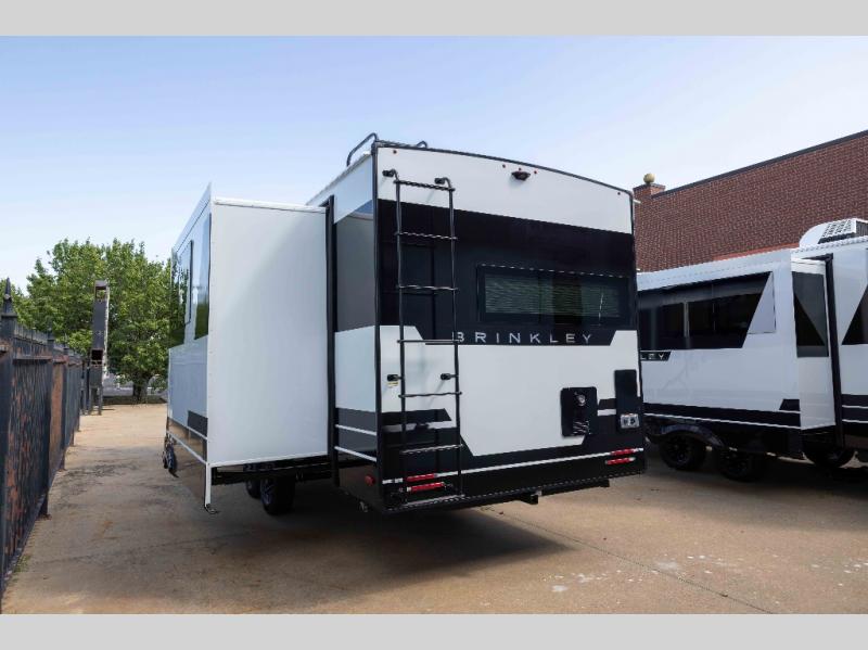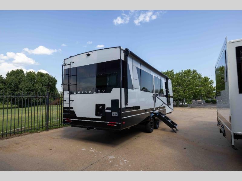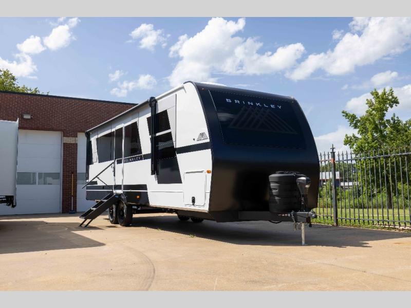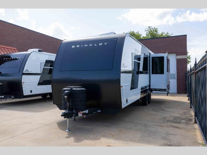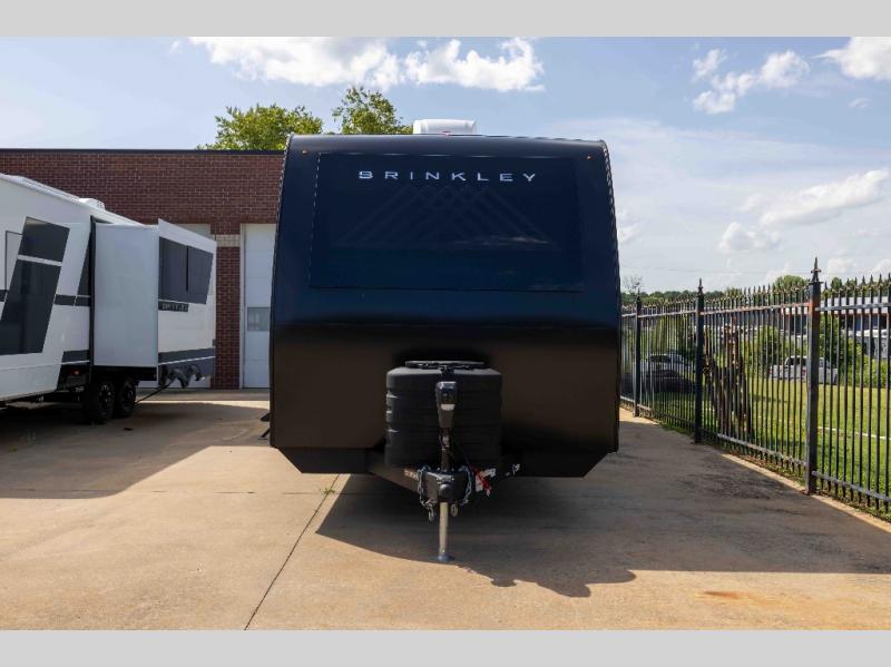The lightweight Model I travel trailer by Brinkley is the perfect choice for those looking for an easy tow and at-home comforts! There is a drop-frame chassis, high-performance Road Armor suspension equalizer system, and Demco EZ Latch trailer coupler that automatically latches when dropped onto a hitch ball without the need of a safety pin. Additional exterior features include square Euro frameless windows, automotive-grade paint, full-width LED strip lighting in the pass-thru, and a pet & property security campside tie-down to keep your gear and furry friends safe. Inside, you'll be wowed by Brinkley's CraftSense wood trim construction, residential solid surface kitchen countertops, dimmable bedroom lights, and marine-grade neon LED shower lighting to name a few stand-out features!