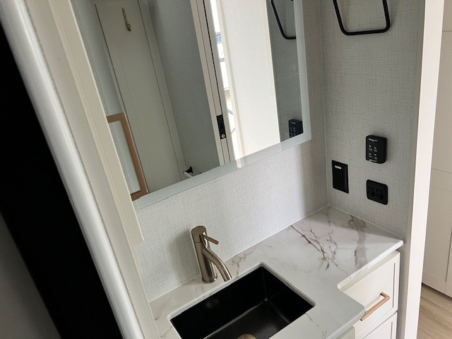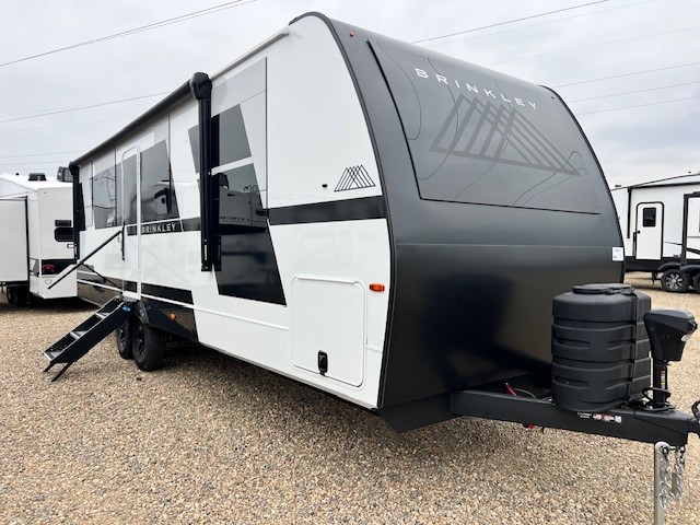 The lightweight Model I travel trailer by Brinkley is the perfect choice for those looking for an easy tow and at-home comforts! There is a drop-frame chassis, high-performance Road Armor suspension equalizer system, and Demco EZ Latch trailer coupler that automatically latches when dropped onto a hitch ball without the need of a safety pin. Additional exterior features include square Euro frameless windows, automotive-grade paint, full-width LED strip lighting in the pass-thru, and a pet & property security campside tie-down to keep your gear and furry friends safe. Inside, you'll be wowed by Brinkley's CraftSense wood trim construction, residential solid surface kitchen countertops, dimmable bedroom lights, and marine-grade neon LED shower lighting to name a few stand-out features!