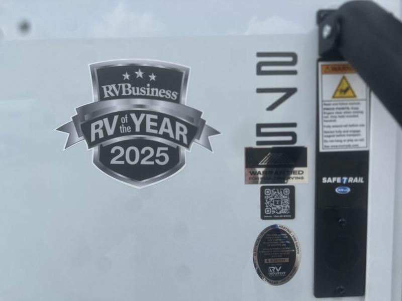 This travel trailer can comfortably sleep four with the king bed in the private bedroom and the tri-fold sofa in the main living area! The full bath features a spacious 42" x 30" shower with a built-in seat and Maxxair fan to name a few comforts. The front private bedroom features a 66" x 80" king bed with a MaxSpace Split-Level Wardrobe underneath to store shoes, clothes, and more! A slide out in the combined living area and rear kitchen makes your space more open, and you'll enjoy relaxing on the theater seating here in the evenings. The full kitchen includes a three burner stovetop, residential 30" convection microwave, 12 cu. ft. 12V refrigerator, plus a trash bin and Stow N' Go paper towel holder for added convenience. You can choose to eat outdoors under the 19' electric awning with LED lights or stay inside to dine at the pull-out dining table with a drawer for added storage!
