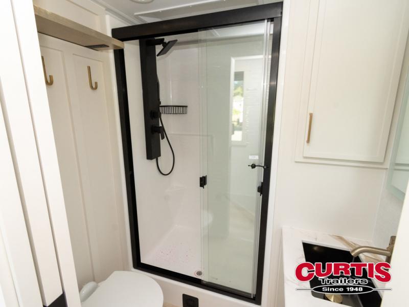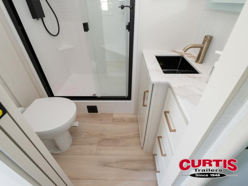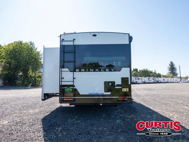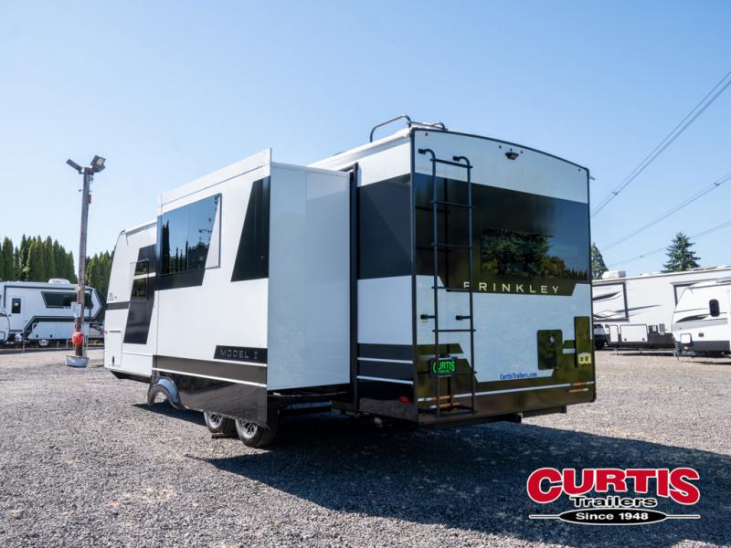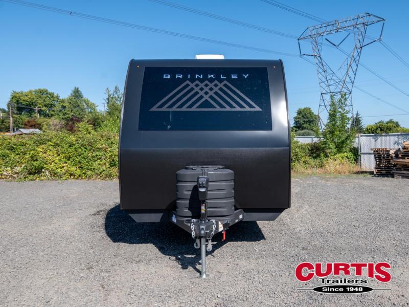 The lightweight Model I travel trailer by Brinkley is the perfect choice for those looking for an easy tow and at-home comforts! There is a drop-frame chassis, high-performance Road Armor suspension equalizer system, and Demco EZ Latch trailer coupler that automatically latches when dropped onto a hitch ball without the need of a safety pin. Additional exterior features include square Euro frameless windows, automotive-grade paint, full-width LED strip lighting in the pass-thru, and a pet & property security campside tie-down to keep your gear and furry friends safe. Inside, you'll be wowed by Brinkley's CraftSense wood trim construction, residential solid surface kitchen countertops, dimmable bedroom lights, and marine-grade neon LED shower lighting to name a few stand-out features!