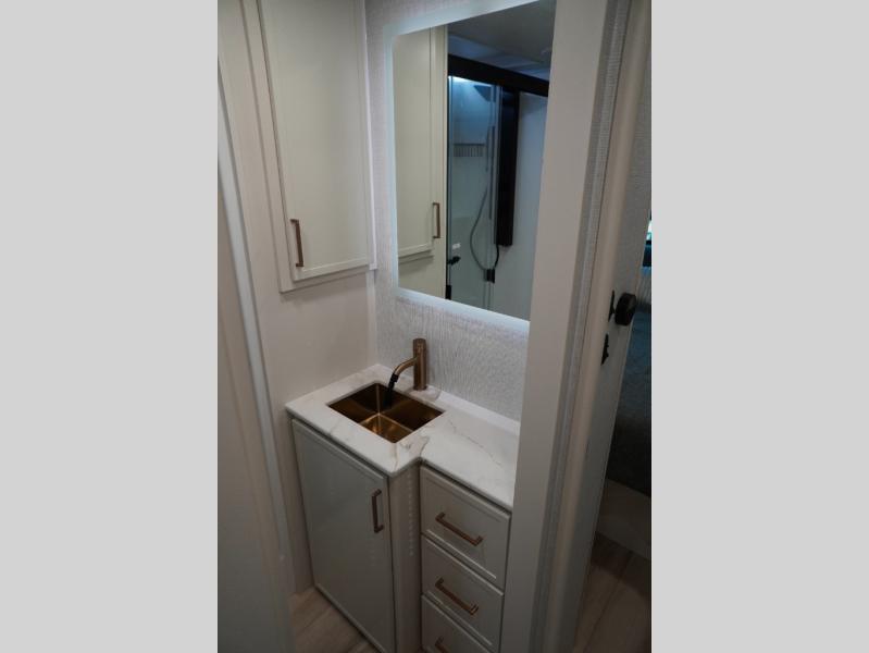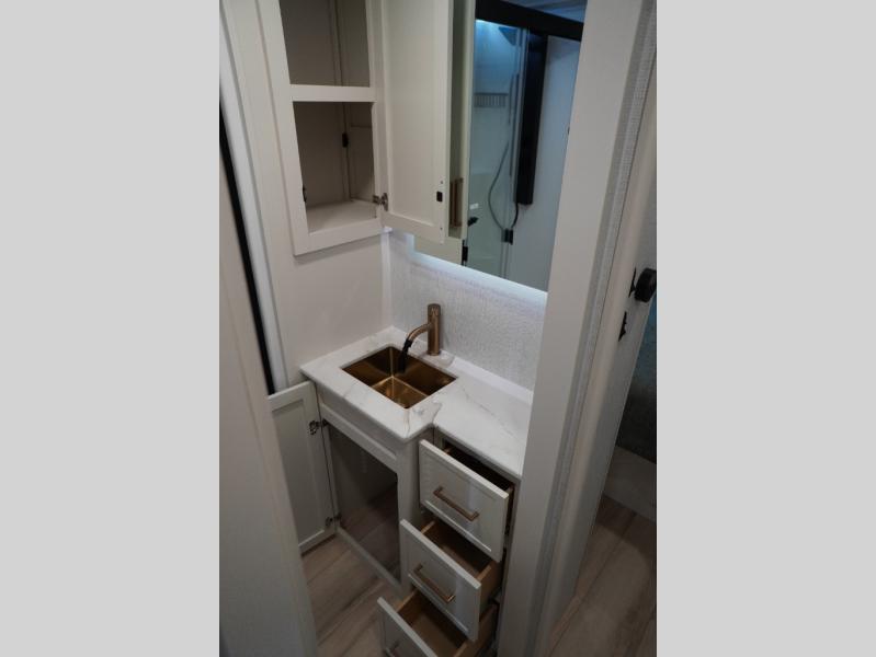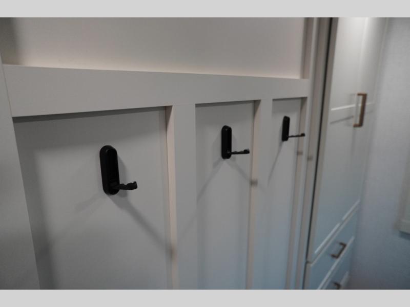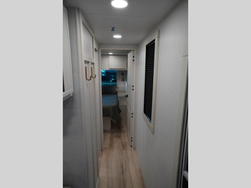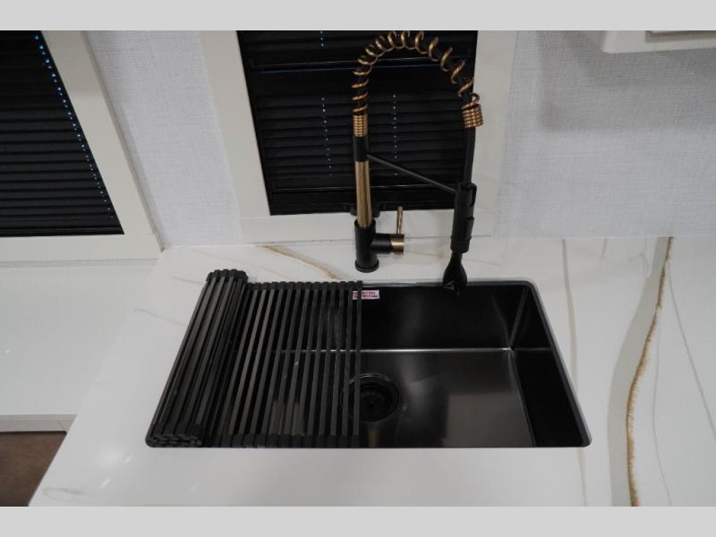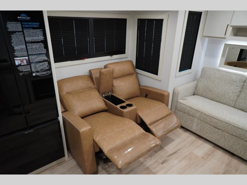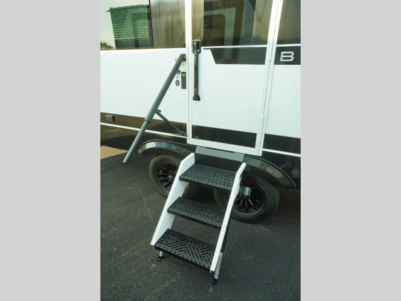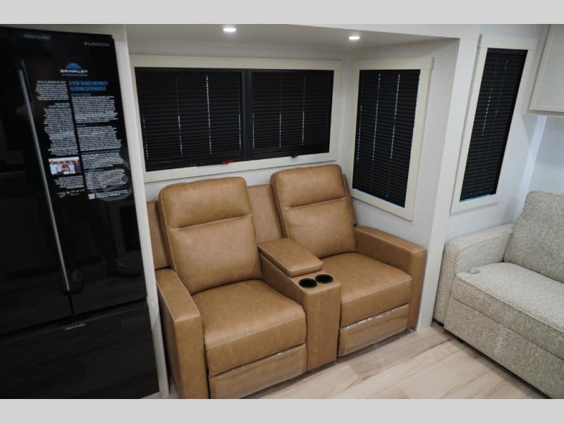 The lightweight Model I travel trailer by Brinkley is the perfect choice for those looking for an easy tow and at-home comforts! There is a drop-frame chassis, high-performance Road Armor suspension equalizer system, and Demco EZ Latch trailer coupler that automatically latches when dropped onto a hitch ball without the need of a safety pin. Additional exterior features include square Euro frameless windows, automotive-grade paint, full-width LED strip lighting in the pass-thru, and a pet & property security campside tie-down to keep your gear and furry friends safe. Inside, you'll be wowed by Brinkley's CraftSense wood trim construction, residential solid surface kitchen countertops, dimmable bedroom lights, and marine-grade neon LED shower lighting to name a few stand-out features!