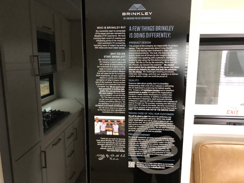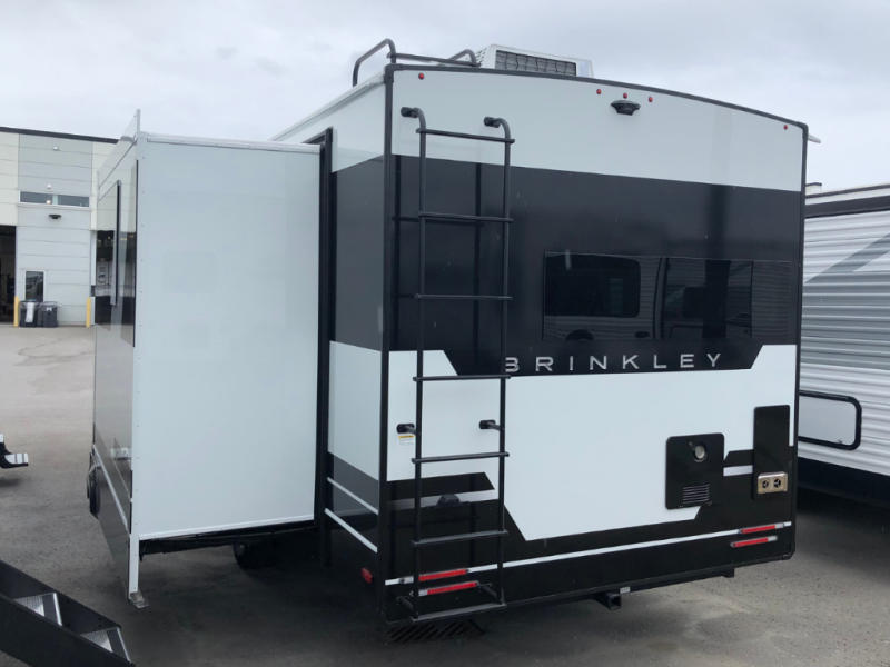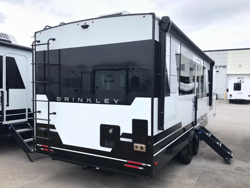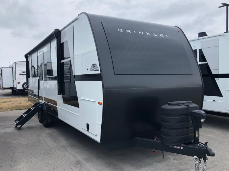 The lightweight Model I travel trailer by Brinkley is the perfect choice for those looking for an easy tow and at-home comforts! There is a drop-frame chassis, high-performance Road Armor suspension equalizer system, and Demco EZ Latch trailer coupler that automatically latches when dropped onto a hitch ball without the need of a safety pin. Additional exterior features include square Euro frameless windows, automotive-grade paint, full-width LED strip lighting in the pass-thru, and a pet & property security campside tie-down to keep your gear and furry friends safe. Inside, you'll be wowed by Brinkley's CraftSense wood trim construction, residential solid surface kitchen countertops, dimmable bedroom lights, and marine-grade neon LED shower lighting to name a few stand-out features!