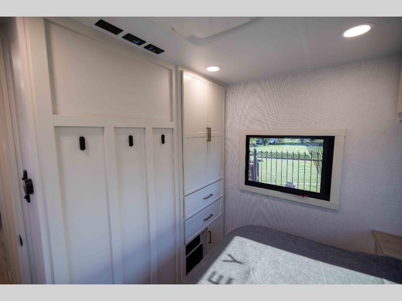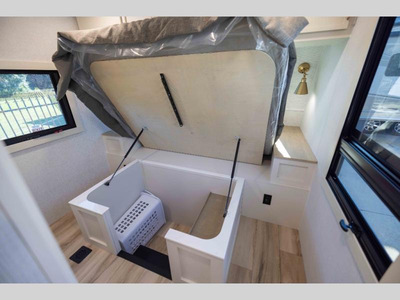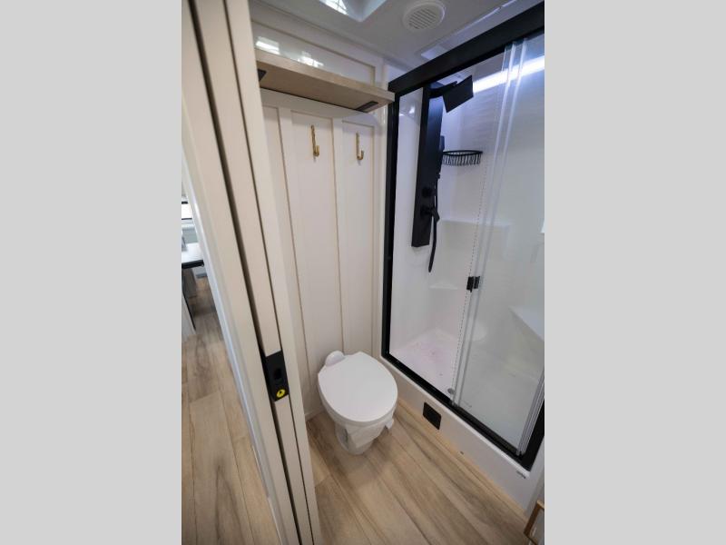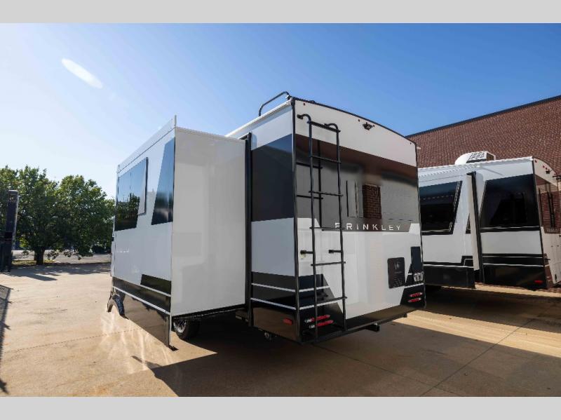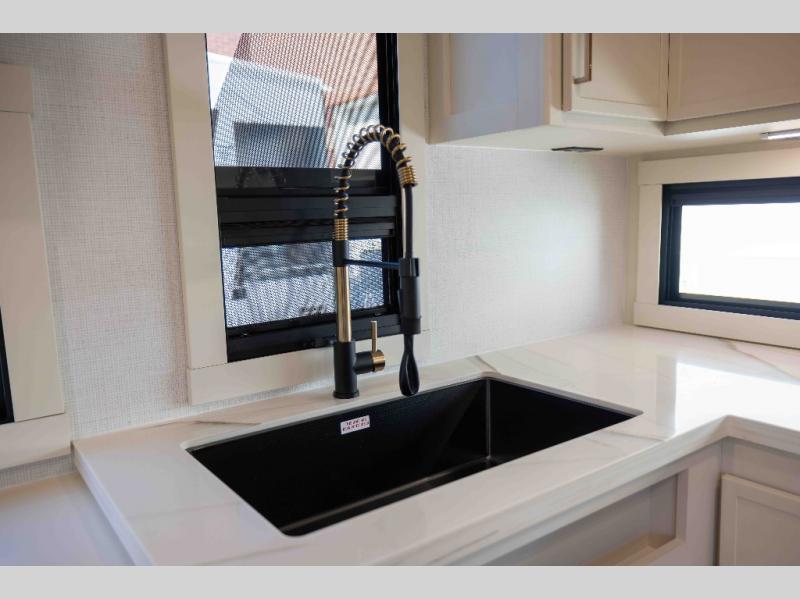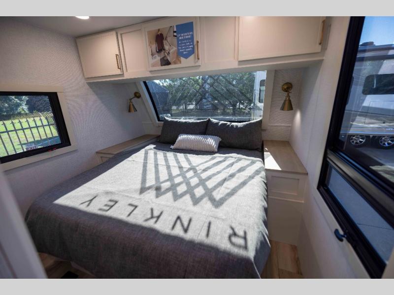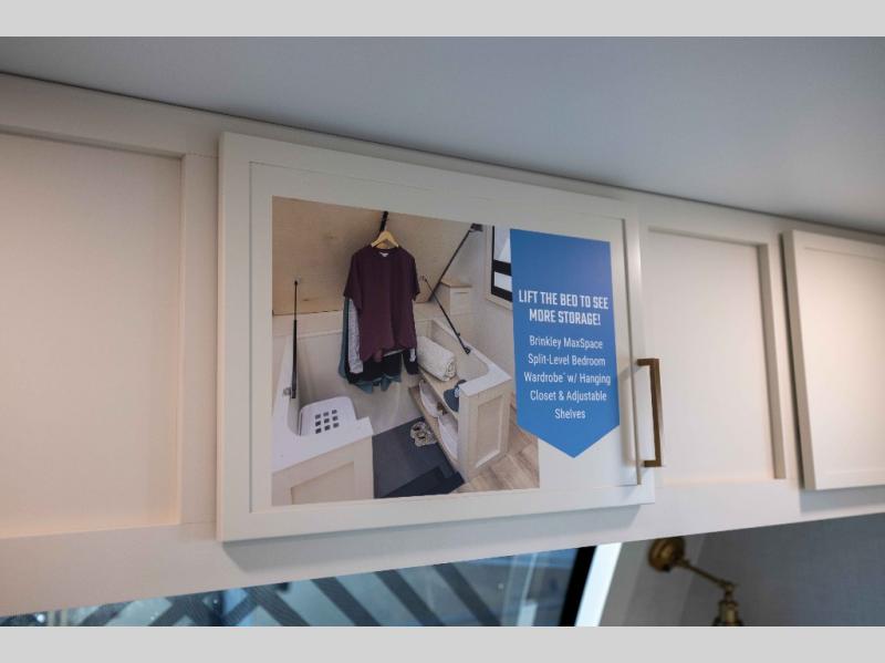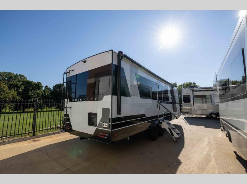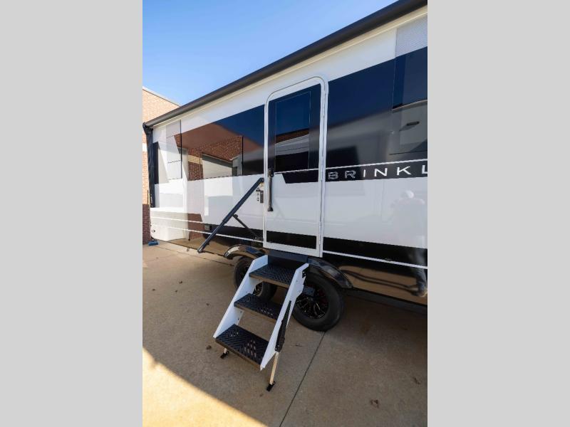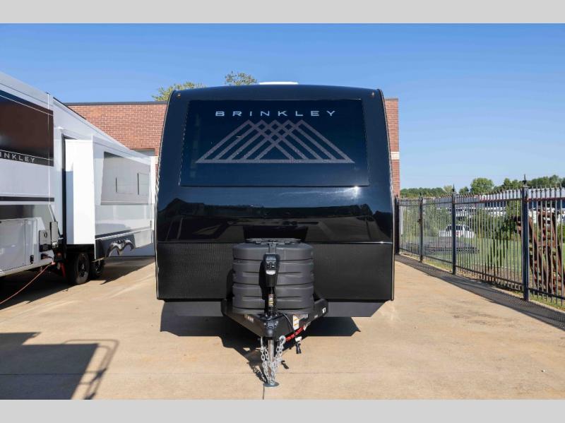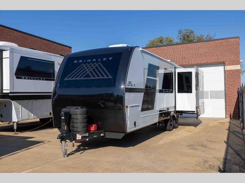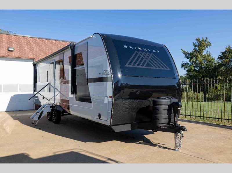 The lightweight Model I travel trailer by Brinkley is the perfect choice for those looking for an easy tow and at-home comforts! There is a drop-frame chassis, high-performance Road Armor suspension equalizer system, and Demco EZ Latch trailer coupler that automatically latches when dropped onto a hitch ball without the need of a safety pin. Additional exterior features include square Euro frameless windows, automotive-grade paint, full-width LED strip lighting in the pass-thru, and a pet & property security campside tie-down to keep your gear and furry friends safe. Inside, you'll be wowed by Brinkley's CraftSense wood trim construction, residential solid surface kitchen countertops, dimmable bedroom lights, and marine-grade neon LED shower lighting to name a few stand-out features!