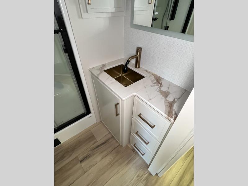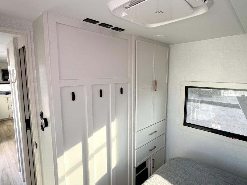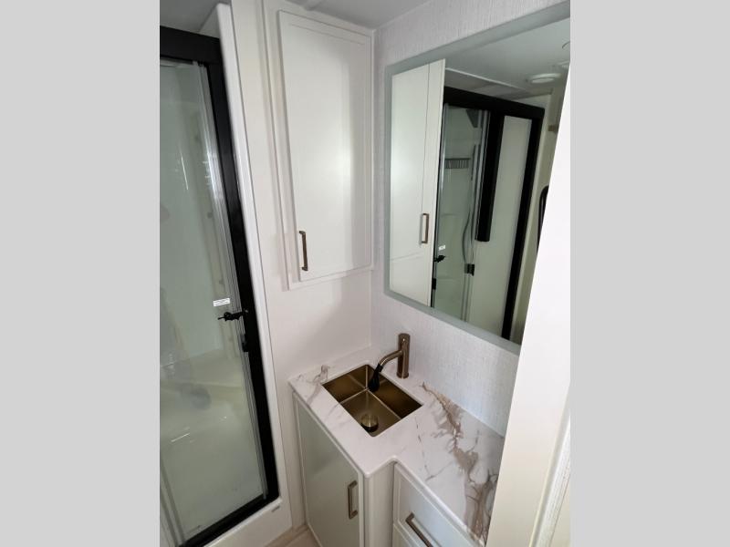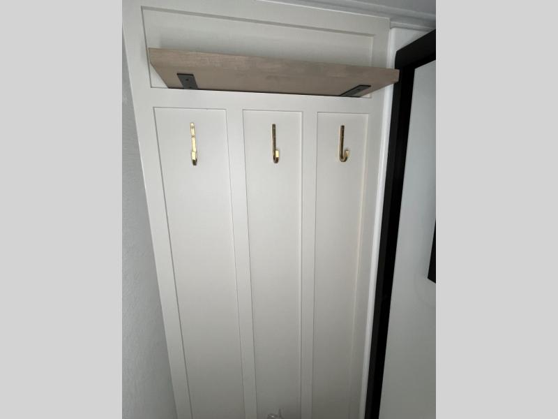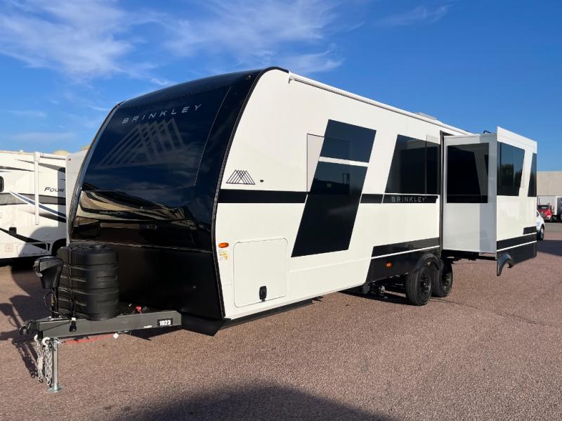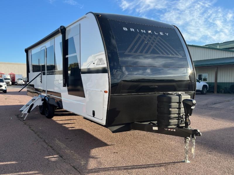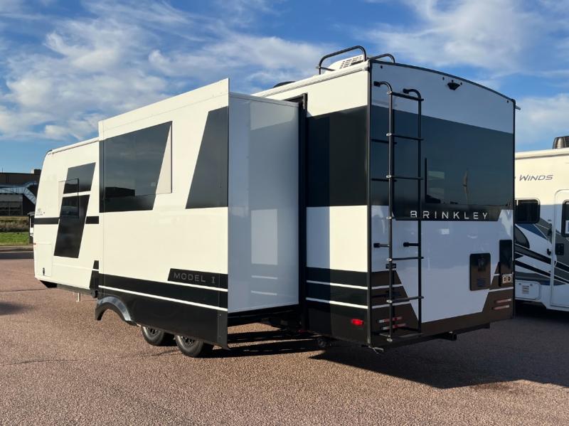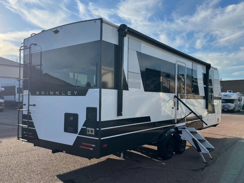 The lightweight Model I travel trailer by Brinkley is the perfect choice for those looking for an easy tow and at-home comforts! There is a drop-frame chassis, high-performance Road Armor suspension equalizer system, and Demco EZ Latch trailer coupler that automatically latches when dropped onto a hitch ball without the need of a safety pin. Additional exterior features include square Euro frameless windows, automotive-grade paint, full-width LED strip lighting in the pass-thru, and a pet & property security campside tie-down to keep your gear and furry friends safe. Inside, you'll be wowed by Brinkley's CraftSense wood trim construction, residential solid surface kitchen countertops, dimmable bedroom lights, and marine-grade neon LED shower lighting to name a few stand-out features!
