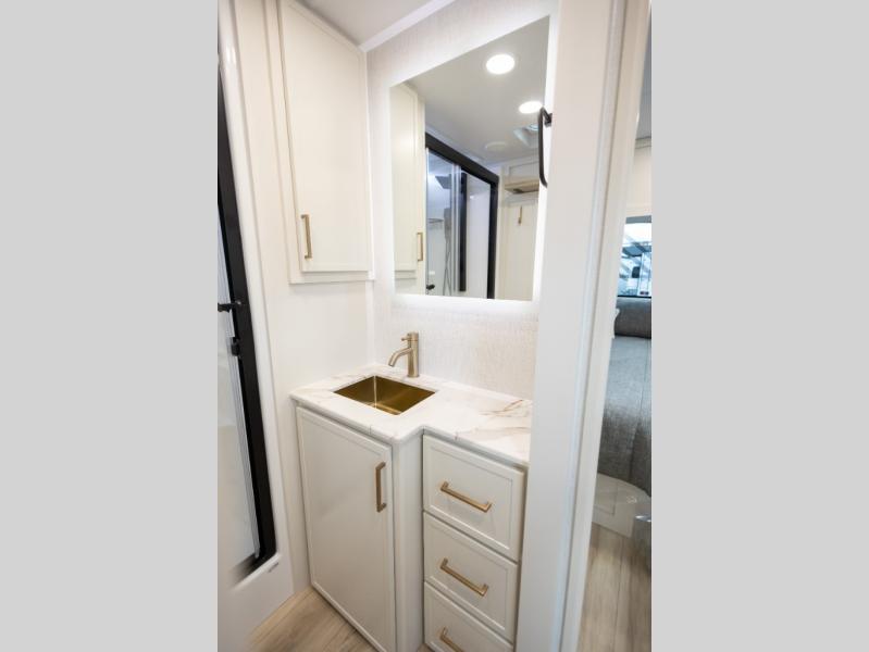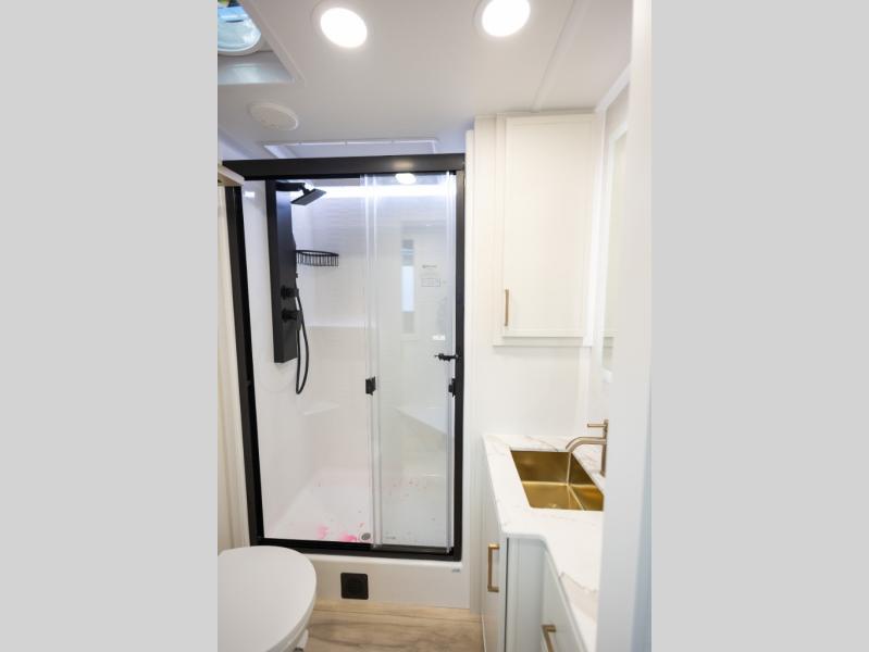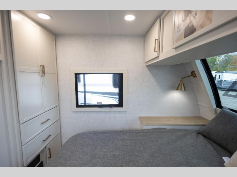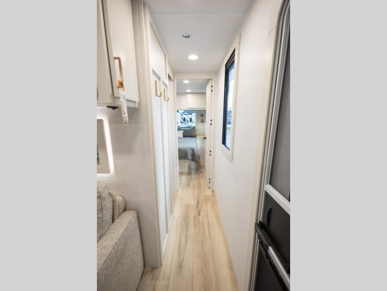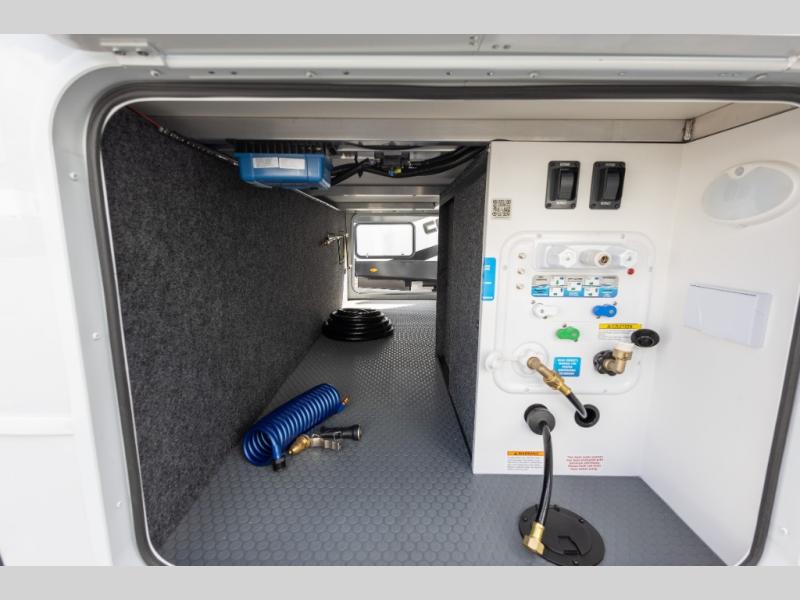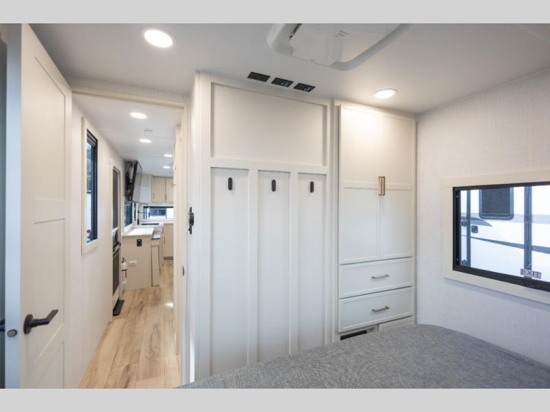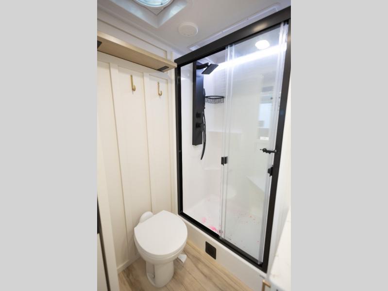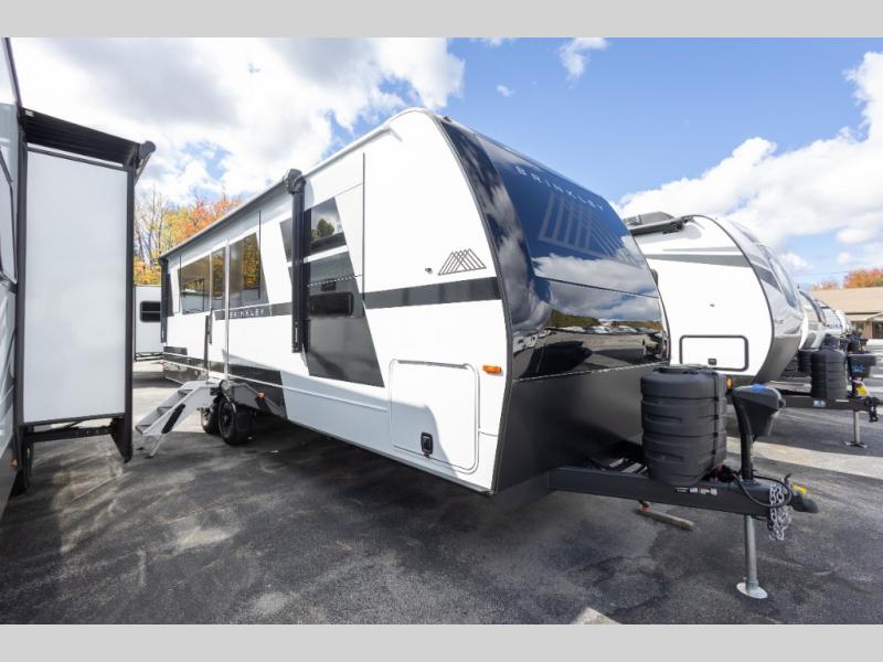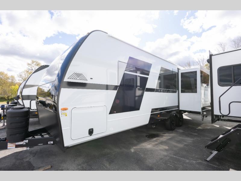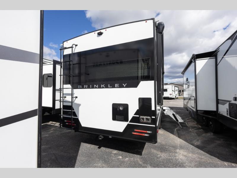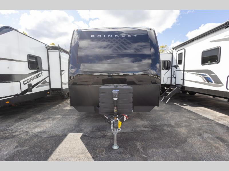 The lightweight Model I travel trailer by Brinkley is the perfect choice for those looking for an easy tow and at-home comforts! There is a drop-frame chassis, high-performance Road Armor suspension equalizer system, and Demco EZ Latch trailer coupler that automatically latches when dropped onto a hitch ball without the need of a safety pin. Additional exterior features include square Euro frameless windows, automotive-grade paint, full-width LED strip lighting in the pass-thru, and a pet & property security campside tie-down to keep your gear and furry friends safe. Inside, you'll be wowed by Brinkley's CraftSense wood trim construction, residential solid surface kitchen countertops, dimmable bedroom lights, and marine-grade neon LED shower lighting to name a few stand-out features!