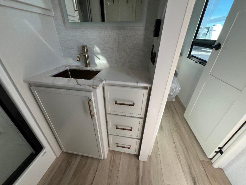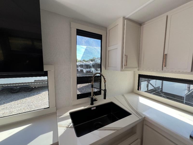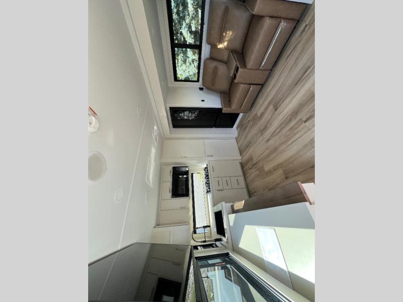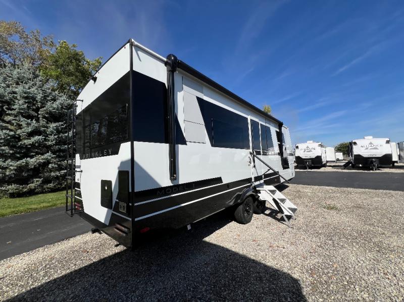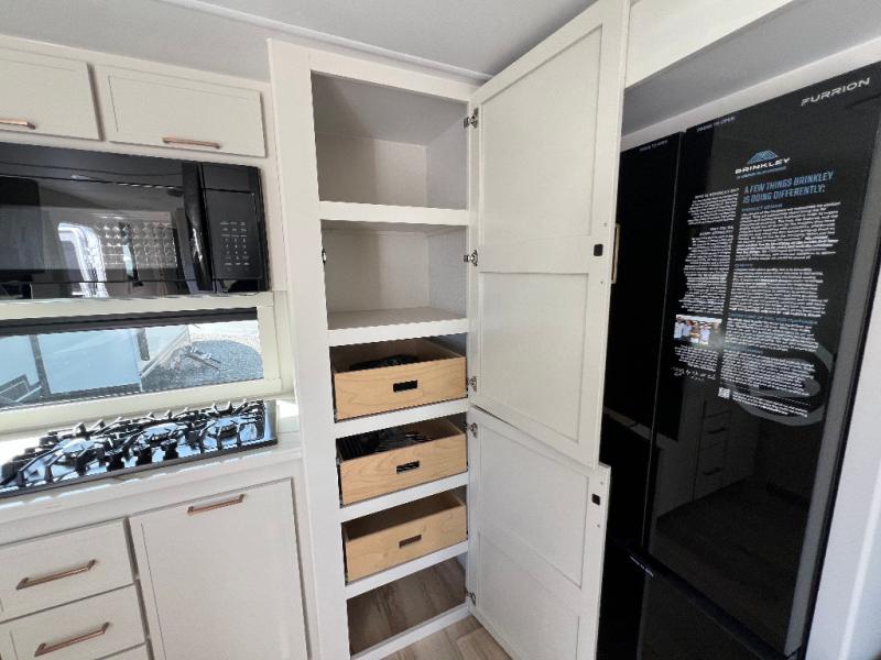 The lightweight Model I travel trailer by Brinkley is the perfect choice for those looking for an easy tow and at-home comforts! There is a drop-frame chassis, high-performance Road Armor suspension equalizer system, and Demco EZ Latch trailer coupler that automatically latches when dropped onto a hitch ball without the need of a safety pin. Additional exterior features include square Euro frameless windows, automotive-grade paint, full-width LED strip lighting in the pass-thru, and a pet & property security campside tie-down to keep your gear and furry friends safe. Inside, you'll be wowed by Brinkley's CraftSense wood trim construction, residential solid surface kitchen countertops, dimmable bedroom lights, and marine-grade neon LED shower lighting to name a few stand-out features!